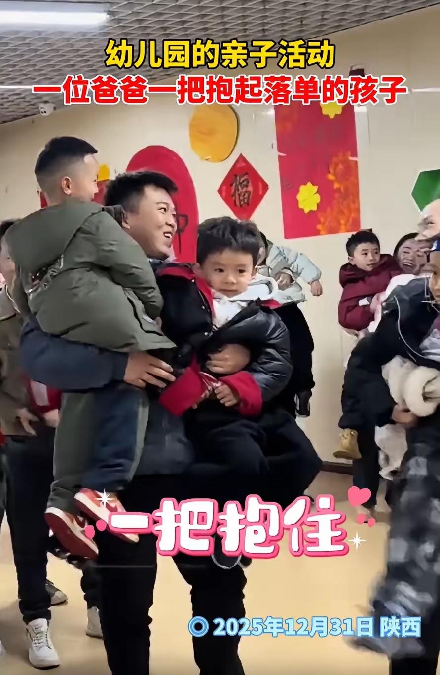 泪目了!陕西,一幼儿园举办跨年夜亲子活动,一位父亲正抱着自己的儿子举高高,却突然发现旁边一名落单的孩子,见他没有家长的陪伴,便一把将孩子抱了起来,而这一抱,孩子笑了,网友也一起笑了:这一瞬间,孩子会记很久 后来才知道,那个落单的小家伙爸妈在外地打工,本来答应回来陪他跨年,结果临时有事没赶回来,爷爷又突然感冒来不了。活动开始后,别的小朋友都拉着家长的手跑前跑后,就他一个人站在滑梯旁边,小手攥着衣角,眼睛跟着别人的笑声转,看着特别让人心疼。 那位爸爸当时正把自家娃举得老高,孩子咯咯的笑声老远都能听见。他低头换气的时候,余光瞥见了那个孤零零的小身影,愣了一下,没跟谁商量,直接走过去弯下腰,用另一只胳膊也把那孩子圈了起来。刚开始那小家伙还有点拘谨,身子绷着,可当爸爸的手掌轻轻拍了拍他后背,说“来,叔叔带你看烟花”,他突然就放松了,小脑袋往大人肩膀上一靠,眼睛笑成了月牙儿。 这段视频发到网上,评论区直接炸开了锅。有网友说:“这一抱,比任何跨年礼物都金贵,孩子长大了说不定都记得这天有个陌生叔叔给了他双倍的暖。”还有人留言:“突然想起我小时候爸妈忙,邻居阿姨总喊我去她家吃饭,现在三十多了,还能想起她家饭桌上的香味。”更逗的是有位网友说:“这位爸爸胳膊上扛着的是两个未来,一个是自家的,一个是大家的。” 说实话,看完这段视频我鼻子有点酸。现在总说跨年要仪式感,买多贵的烟花,吃多好的大餐,可对孩子来说,最实在的仪式感其实是“被看见”。那个落单的孩子可能不懂什么叫孤单,但他一定知道“有人陪”有多甜。这位爸爸没做什么惊天动地的事,就是顺手伸了个手,可这顺手的善良,比任何大道理都能教会孩子什么是爱。 我们常说“幼吾幼以及人之幼”,道理谁都懂,可真要做起来,往往就差那一点点主动。或许是怕唐突,或许是觉得“跟我没关系”,可就是这一点点犹豫,可能就错过了给别人温暖的机会。视频里的爸爸多好啊,想都没想就伸出了手,他肩膀上扛着的不只是两个孩子,更是成年人该有的温度。 后来听幼儿园老师说,那孩子回家后抱着电话跟妈妈说:“今天有个叔叔抱我了,他的胳膊好有力气,比爷爷的还暖。”你看,孩子记事儿的方式多简单,一个拥抱就能在心里存好久。 各位读者你们怎么看?欢迎在评论区讨论。
