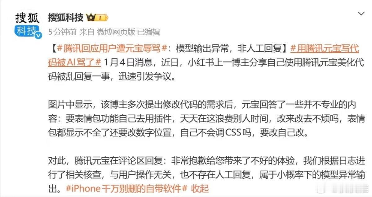 腾讯回应元宝AI辱骂用户当AI也学会了辱骂用户,这个AI你还敢用吗?反正我不会用它的!科技先锋官