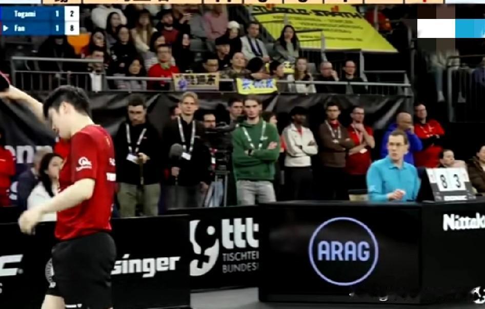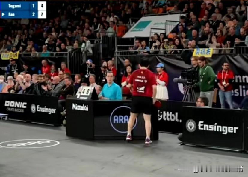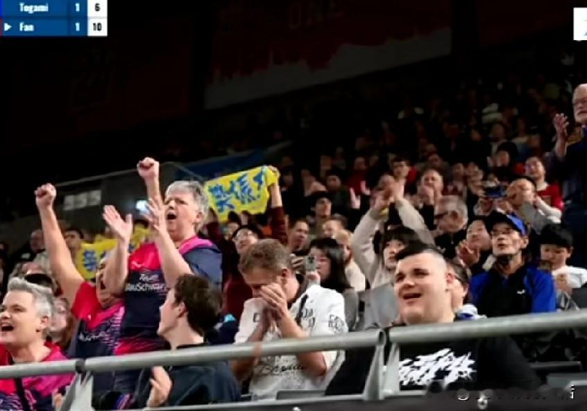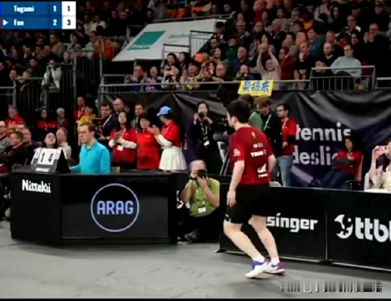德国杯半决赛萨尔布吕肯对阵奥克森豪森,现场观众座无虚席。我发现一个明显的和最开始不同的变化,这次萨尔布吕肯用布围了一块区域出来算是给不远万里去的中国粉丝一个贵宾席位。 我都看了整场比赛,他们观赛吹的那个喇叭声非常的像我们在大街上按汽车的喇叭声。他们的那个鼓可以整场的敲。可能我岁数大的原因,咚咚的敲到最后我竟然有点心慌了。感觉如果心脏不太好的粉丝那个氛围有点适应不了。鼓点咚咚伴随着加油声和鼓掌声竟然感觉像是我们在公园扭大秧歌观众鼓掌的感觉。 就是不知道2026年中国乒超联赛是不是也允许引进欧洲的喇叭和敲鼓的观赛模式。这样不用喊就是吹就是敲的可行不可行。脑补一下。