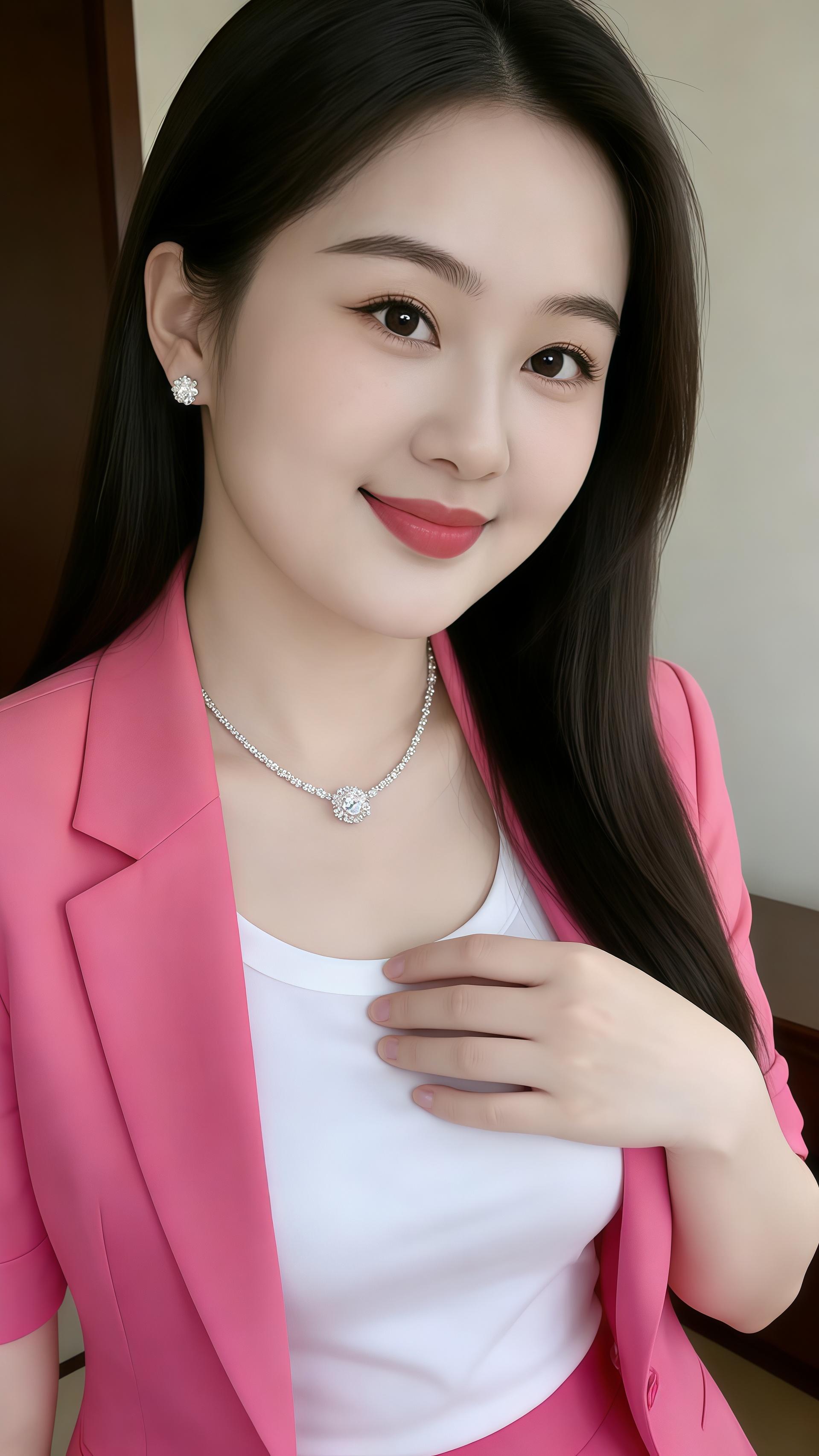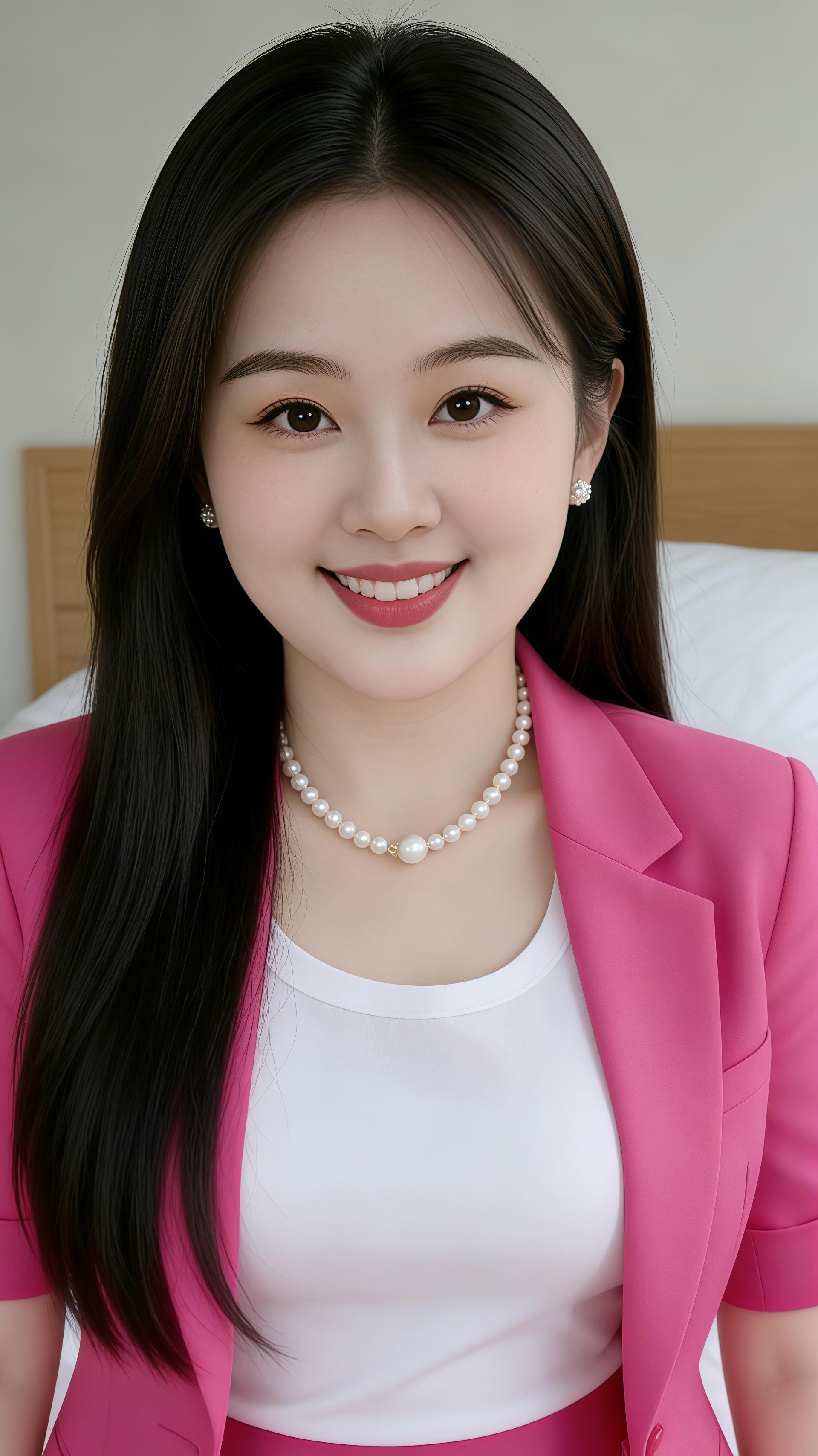 元气少女甜美演绎,粉色毛衣搭配精致发饰,温柔动人