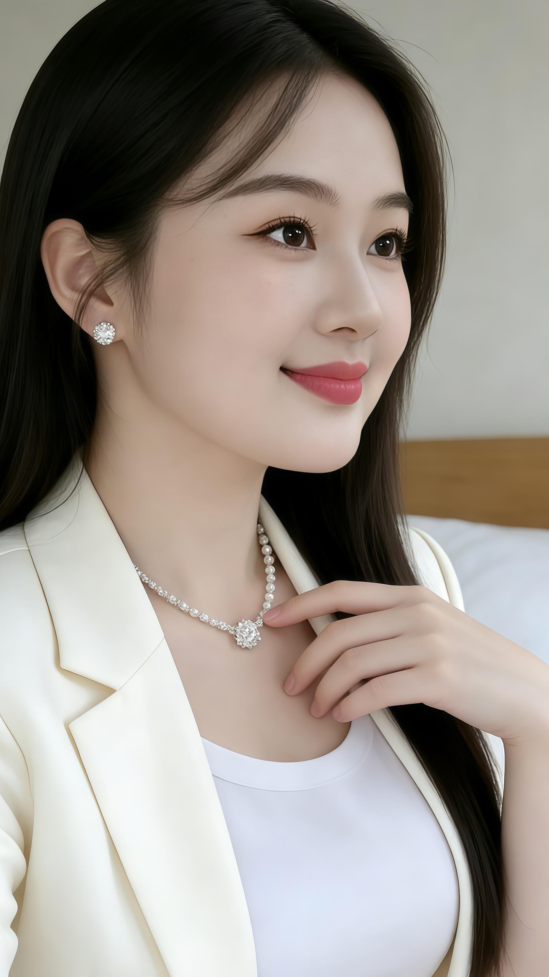 温柔甜美的少女,白色毛衣搭配蝴蝶结发饰,散发着冬日暖阳的气息。🌞💖