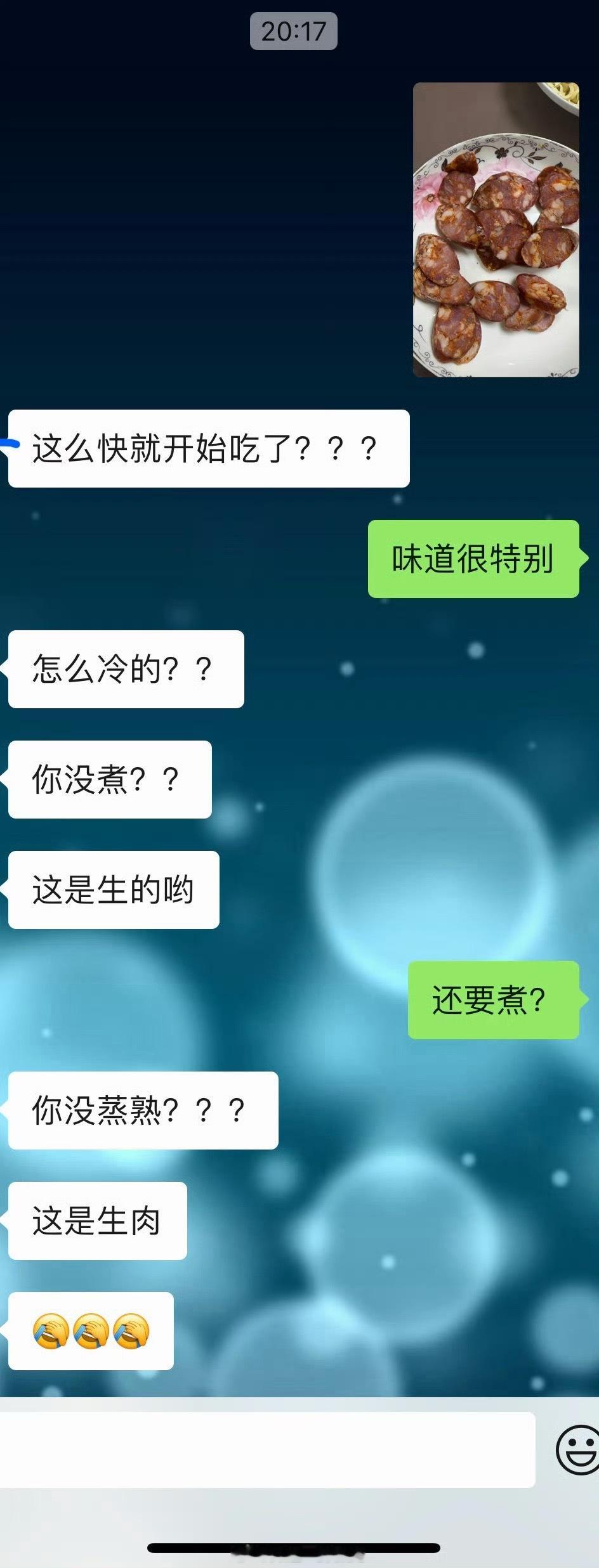两年后的今天,我又收到了香肠,谢谢人美心善的,这次我一定煮熟吃