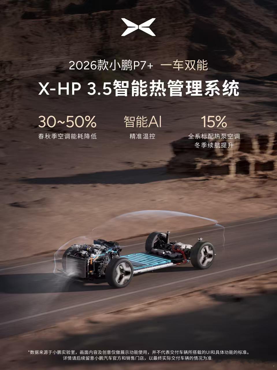 2026款小鹏P7+一车双能,优势在哪里?三电方面:- 全系标配800V高压SiC碳化硅平台,电驱综合效率达92.5%- 全系标配5C超充AI电池,不挑桩的快充,效率提升50% ,12分钟即可补能10%-80%- X-HP 3.5智能热管理系统,智能AI精准温控,春秋季空调能耗降低30~50%,冬季续航提升15%静谧性方面:搭载第三代1.5T高效增压中冷发动机、全栈高集成高压油冷发电机-ENC增程器主动降噪,静谧随行-优化多项直驱零件,减少噪音源-自研主动停缸集成匹配技术,实现无感启停-AI智能工况识别,提前平稳介入,降噪于未然2026款小鹏P7+实现了鱼和熊掌可兼得,既能享受增程长续航带来的自由,又能享受纯电的极致静谧性。现在就等8号上市公布最终的价格了,应该会有惊喜新款小鹏P7+全球动态评测首发2026小鹏全球新品发布会定档1月8日新能源汽车小鹏汽车