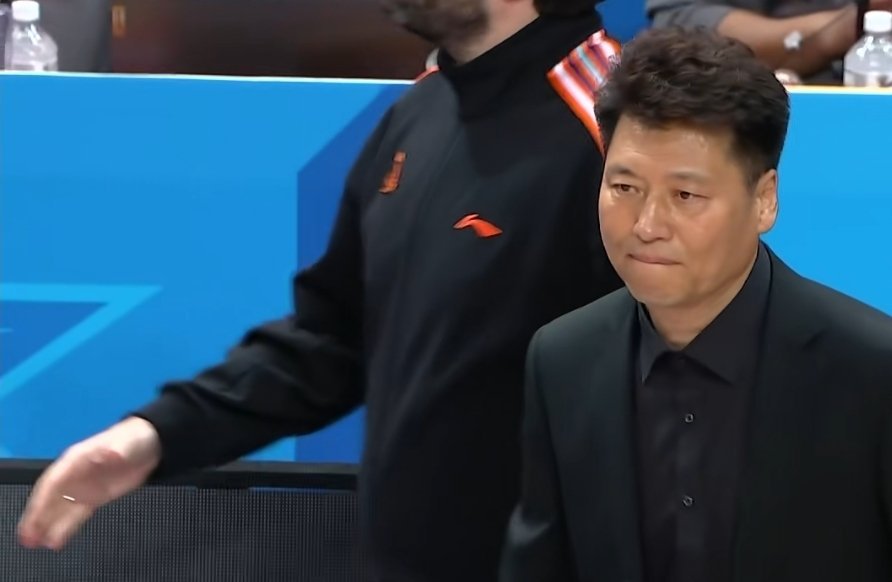新疆男篮赢球了,给韩国主教练金正秀整一身汗