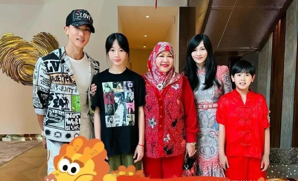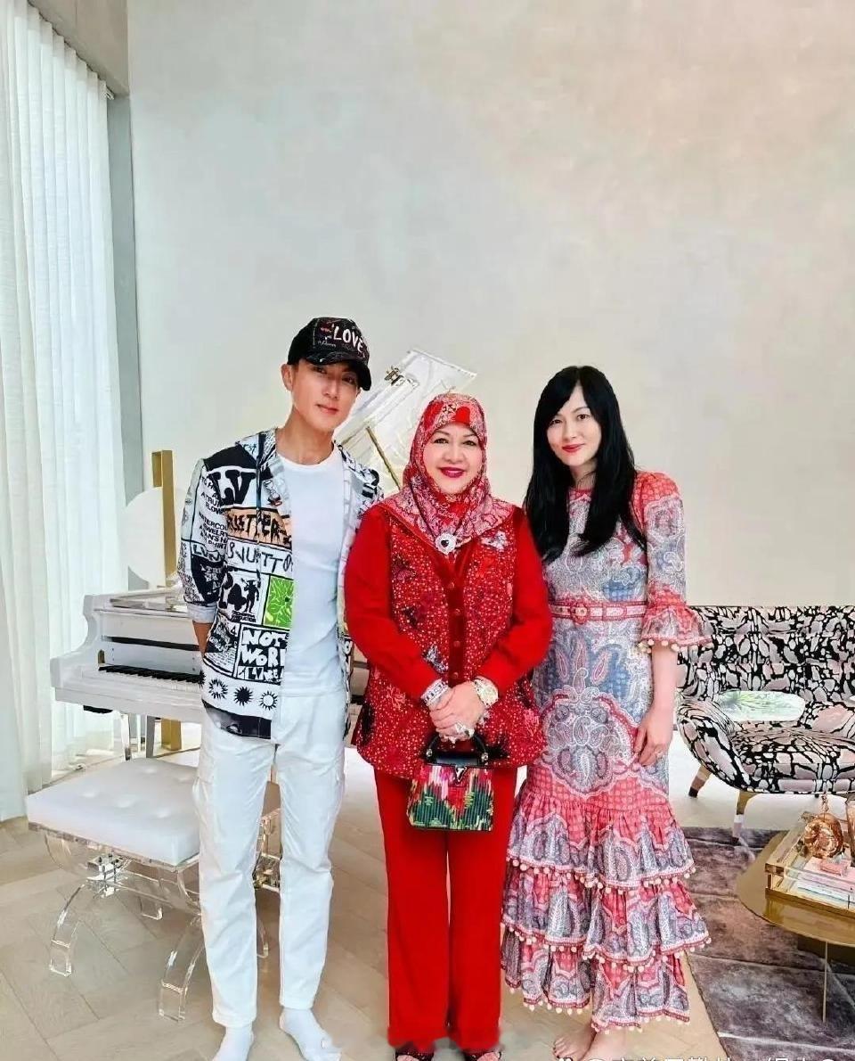 站在吴尊一家中间的,原来是文莱的皇妃,吴尊家在文莱很有钱,但是林丽莹家也很牛,她的爸爸,是皇室成员的营养师哦!而且过年皇妃都亲自到访他们家,看得出他们家的地位有多高!
