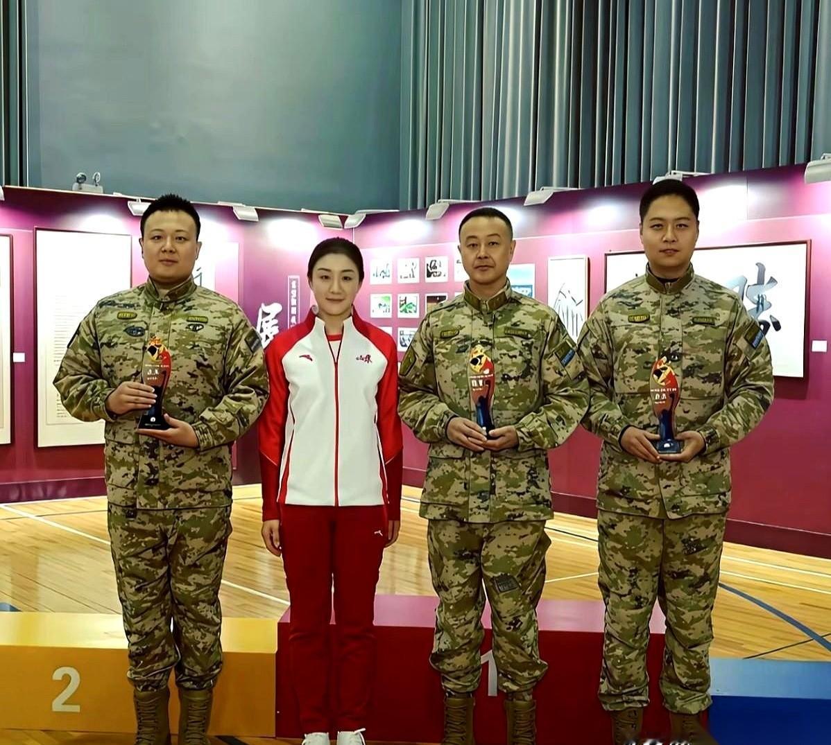 陈梦这张照片,简直了。 一身红白运动服,往三个兵哥哥中间一站。 左右两边,是笔挺的军装绿,帽檐下的眼神纹丝不动,连领口的风纪扣都像是用尺子量过一样严丝合缝;而她,是正中间那一抹耀眼的红,下巴微微抬起,眼神里不是柔弱,全是运动员盯准对手的劲儿。 气场一下就撞上了。 但那抹绿色有多硬,中间那点红色就有多韧,一点没被压住,反而把整个画面的重心都拽到了自己身上。 所以说,到底是运动员那股不服输的劲儿更压得住场,还是军人那一身正气更胜一筹?