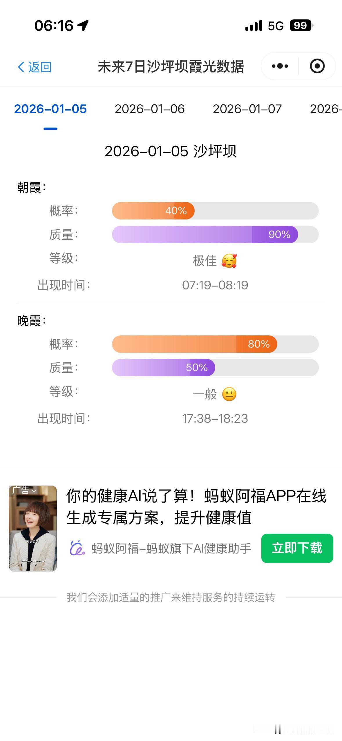 令人神往!1月5日凌晨6点钟,一个大大的圆月亮高高挂在重庆凤鸣山上……我赶紧出门,直奔渝中半岛的鹅岭公园两江楼……老天爷保佑,今天一定要有日出、朝霞、红霞! 说真的,我很多年都没有看到冬天的重庆日出啦! 2026年重庆第一次日出,今年第一个重庆朝霞,太令人期待啦! 好吧,今天一大早,摄影畅销书作家曾兰老师,在仙女山看大雪和雾淞,如果今天上午重庆仙女山出太阳,有蓝天白云,那就太美了啊! 光线摄影学院曾兰老师,昨天在仙女山拍了一个《情书》短视频,好唯美啊!