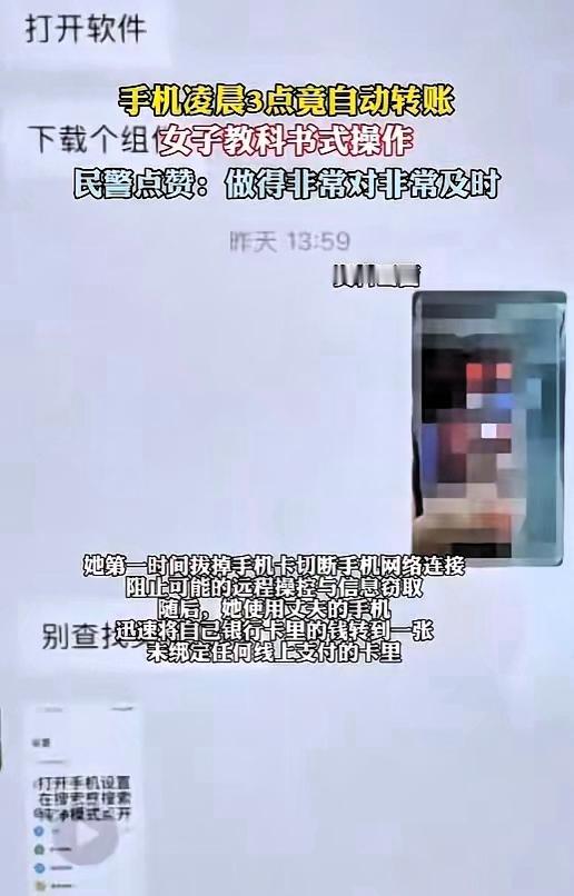 手机半夜自己转账?浙江大姐的“救命操作”,藏着所有人都该懂的防盗真相! 别觉得“没下载成功就没事”,骗子的木马病毒早通过陌生二维码钻进手机了。那些专坑从业者的“工作专用软件”,本质就是裹着糖衣的陷阱,凌晨作案就是赌你熟睡无防备。 贺大姐能止损,核心不是运气好,是摸透了骗子的命门——网络。远程操控转账离了网就是摆设,先断网再转移资金,这步比啥都关键,比跟客服扯皮管用一百倍。 真正的防盗,从来不是事后补救,而是事前设防。留一张不绑定支付的备用卡,陌生二维码先查官方渠道,别为了怕丢单就放松警惕,正规合作绝不会逼你冒风险。 你遇到过让扫陌生二维码的“客户”吗?平时手机支付还设了哪些安全防护?