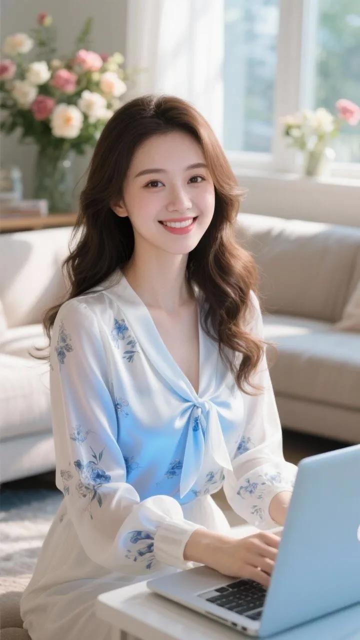 海边少女,笑靥如花,轻纱飘逸,海风轻拂