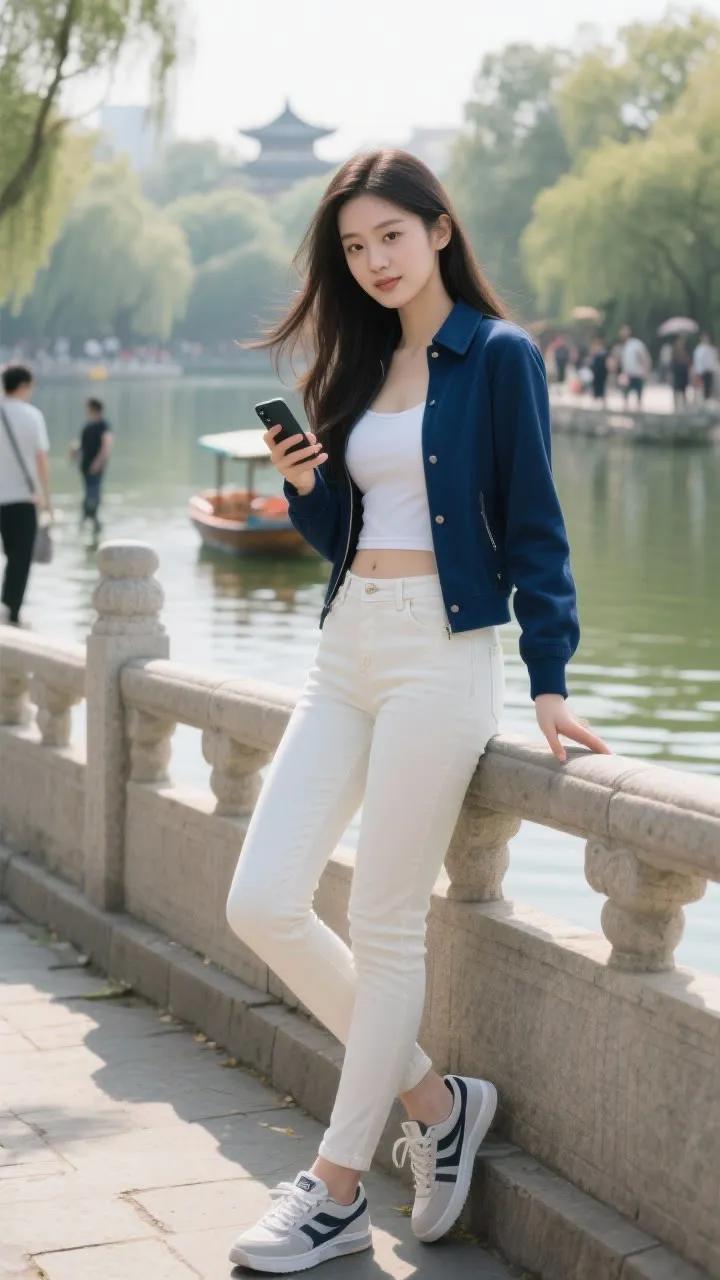 海边少女,青花旗袍,惊艳一瞥