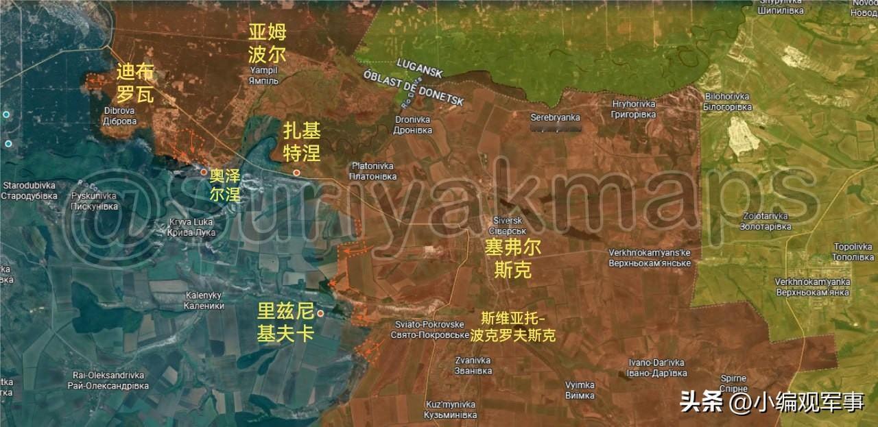 2026年1月3日俄乌最新战报: 1.苏梅州前线: ①在俄乌边境另一个方向开辟新战线的背景下,2025年12月29日,俄军对苏梅州的科马里夫卡村和哈尔基夫卡村发动了进攻(图一)。 ②虽然俄军对哈尔基夫卡村的进攻被乌军击退,但科马里夫卡村的战斗仍在继续,因为俄军已在该村内构筑了防御工事(图一)。 2.顿涅茨克州北部前线: ①过去五天里,俄军继续向迪布罗瓦村西北部和东部推进,控制了大巴卡伊湖北岸和圣山国家公园的部分阵地(图二)。 ②俄军还继续向塞弗尔斯克以西的山丘推进,并在过去四天内攻占了里兹尼基夫卡村内和南部的新区域(图二)。 3.索莱达尔方向前线: ①过去五天里,俄军占领了邦达恩村的中心区域,并在其南部占据了新阵地(图三)。 ②俄军侦察破坏小组继续扩大其在尼基福里夫卡村东南和东部方向的行动范围(图三)。 4.红军村前线: 过去四天里,俄军夺回了红军村市北部的两座养猪场,并向北扩大了行动范围(抵达下一道战壕),然后向西推进至污水处理厂(图四1)。