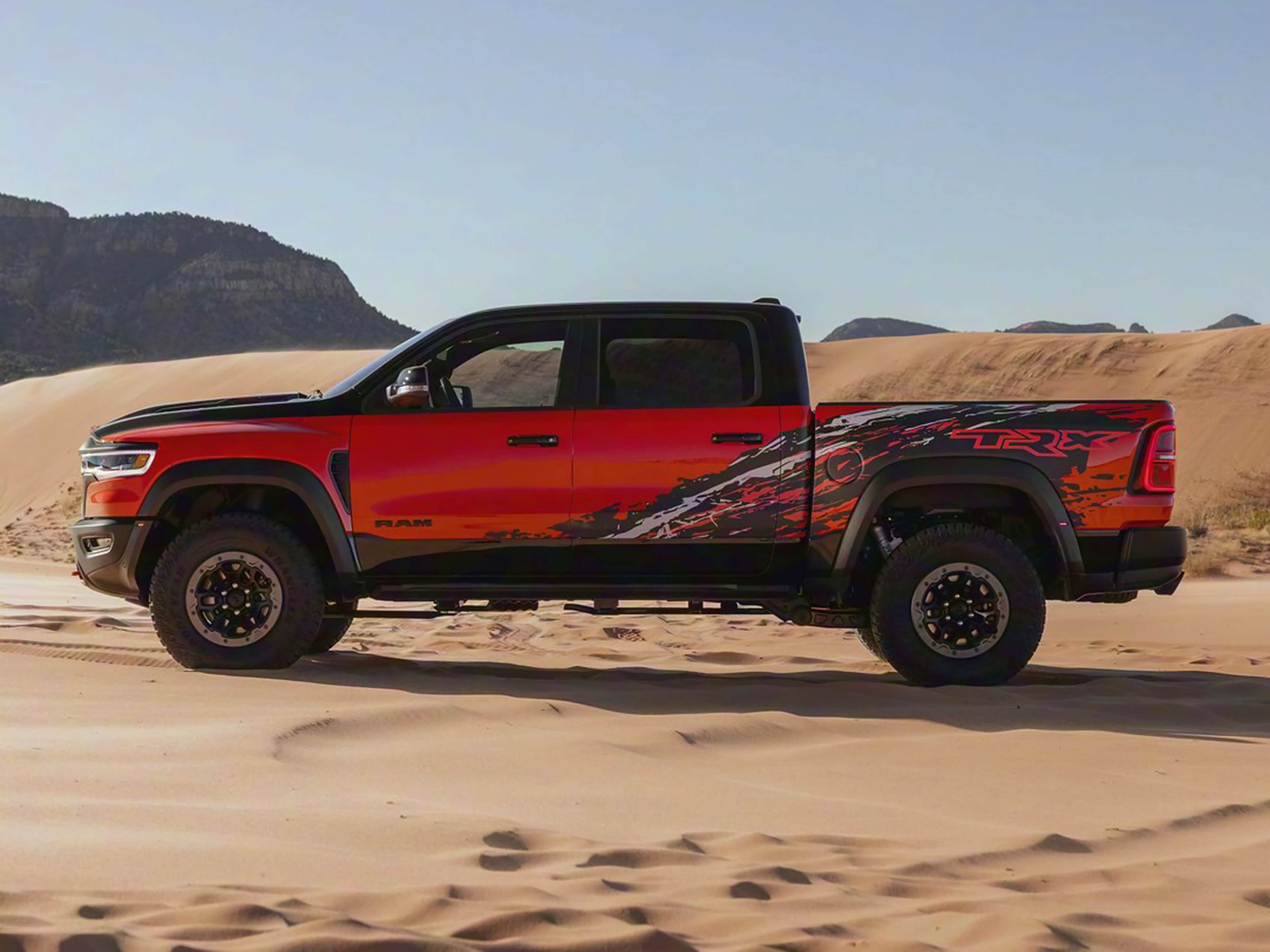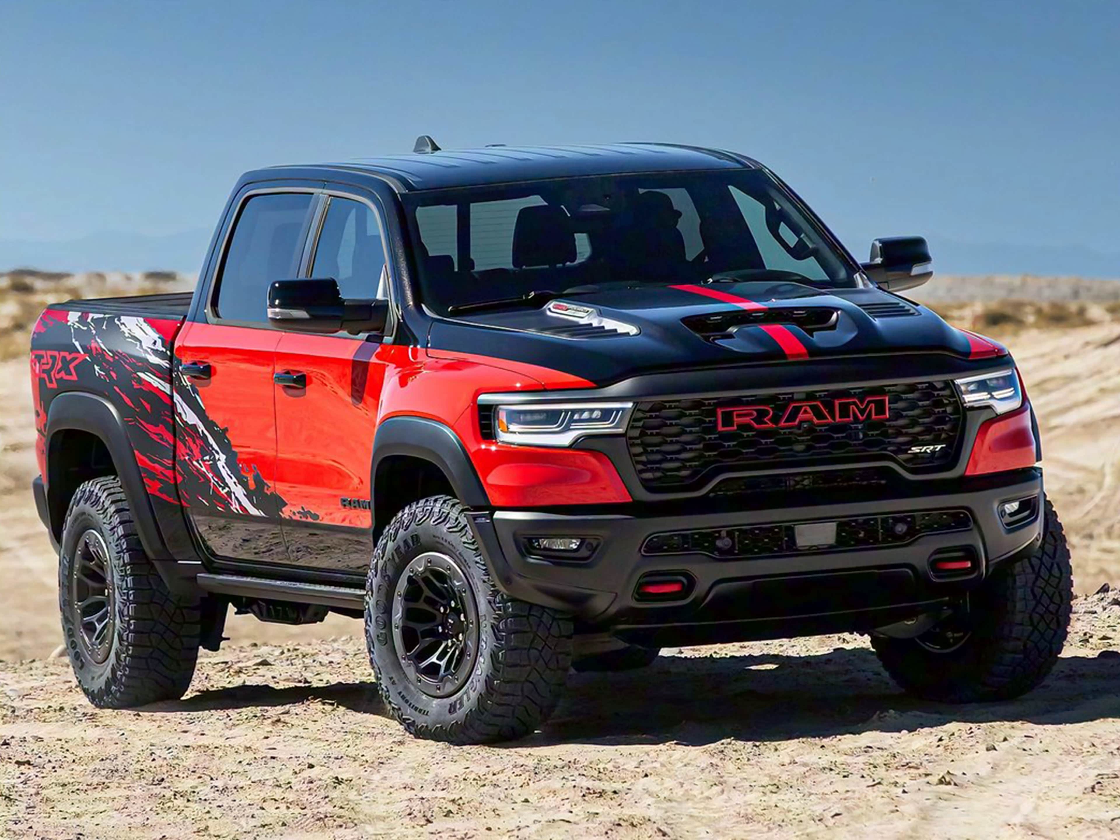 2027款RAM 1500官图发布,采用了Bloodshot Night Edition套件和双色车身,搭载6.2L机械增压HEMI V8发动机,最大功率777马力,峰值扭矩922牛·米,传动匹配8速自动变速箱和全时四驱系统,百公里加速3.5秒。