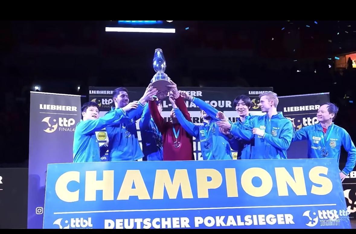 樊振东带领队伍夺得德国杯冠军——俱乐部经理抱娃出现,这样的职场环境真的很不错👍! 樊振东夺得首个德国杯冠军🏆, 决赛赢了后, 走到萨尔球迷区和球迷打招呼🙋, 感觉看了球迷很久, 最后还站在前面一起大合照了, 最开心的一天! 震惊,俱乐部经理还抱娃出现, 有一次客场没有跟赛, 就是要回家带孩子, 这样的职场环境真的很好, 经理带孩子上班, 还在这么大的舞台, 外协的家庭观念也很强啊!