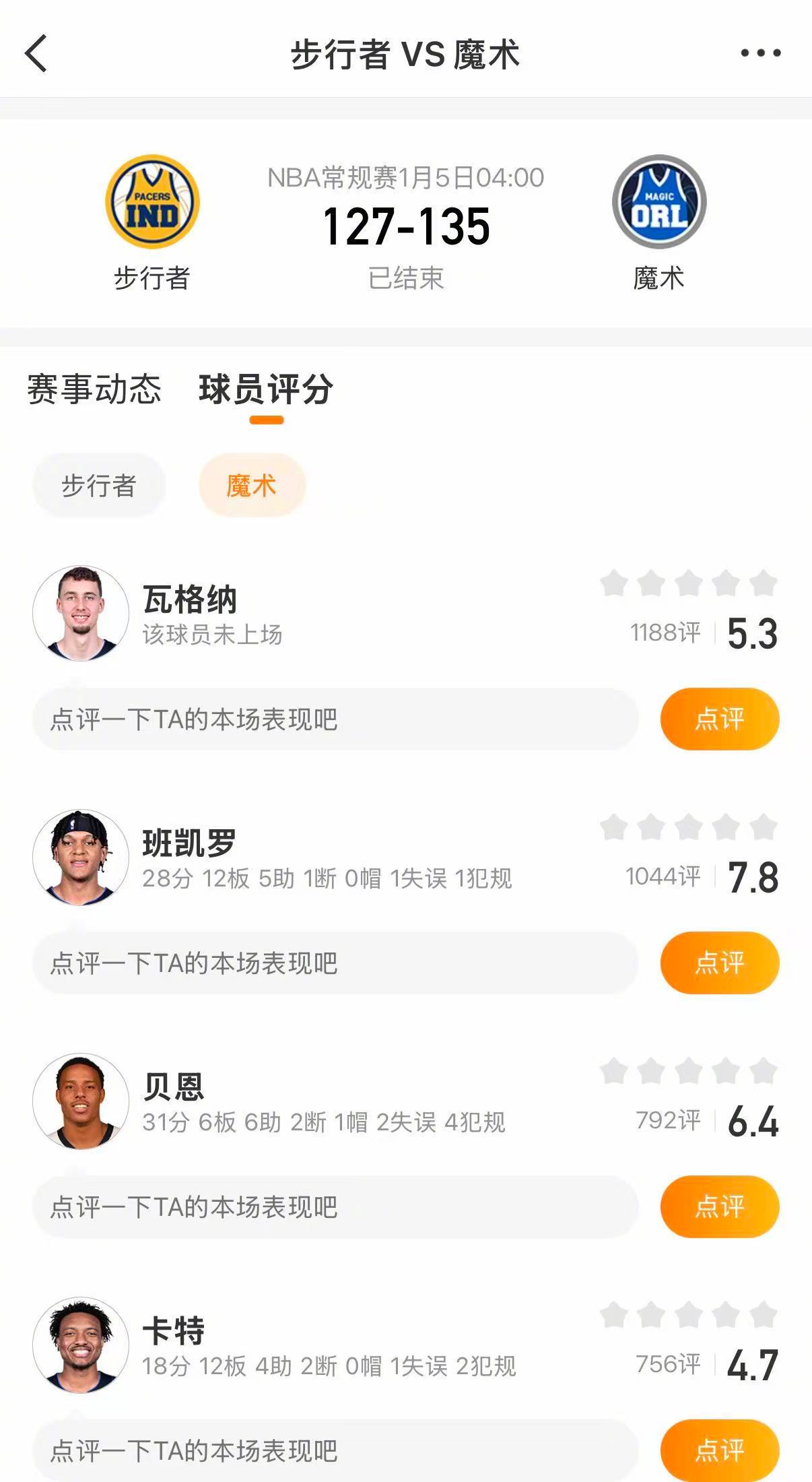 步行者遭遇12连败 步行者127-135不敌魔术,遭遇12连败。自12月9日击败国王之后,步行者主帅里克卡莱尔的执教生涯胜场数一直停在999胜。千胜何时来?欢迎大家进入球队超话奥兰多魔术印第安纳步行者 对球员表现进行评分!