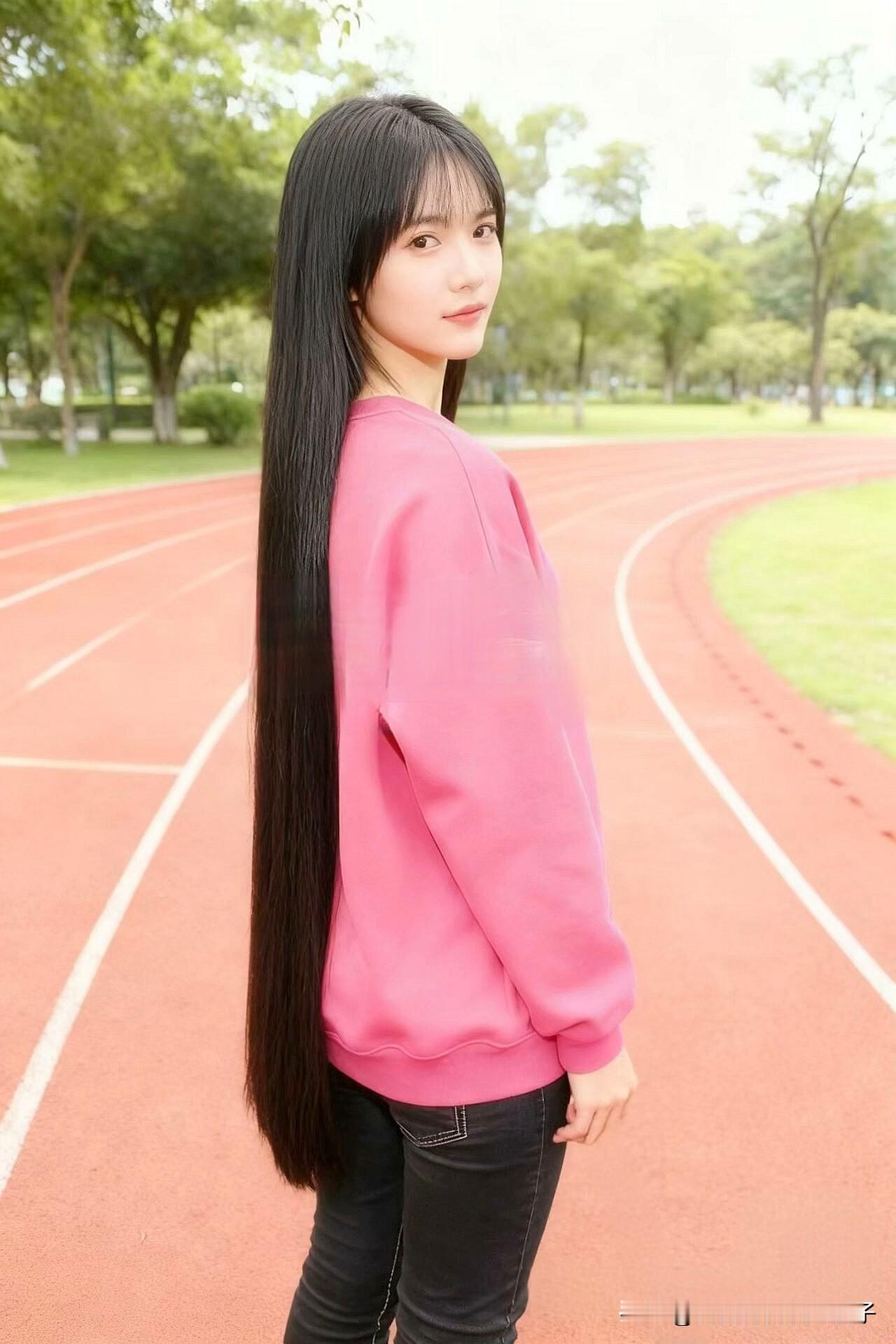 阳光下的运动少女,粉色的运动衫与绿树相映成趣,活力满满!🌞💪🏃♀️
