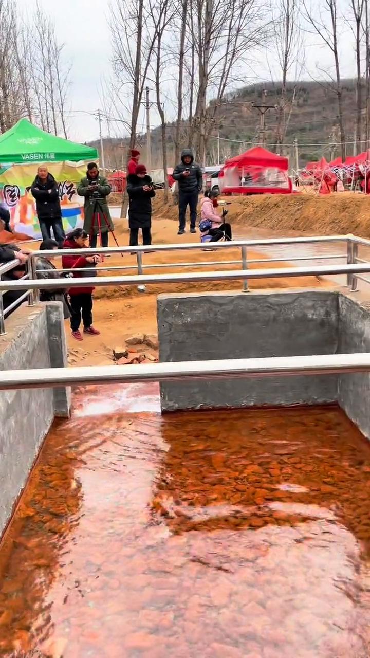 新的一年开始了,来梨园河生态园玩。看看这多少人,看看这个,看这多热闹,这是自然温泉。