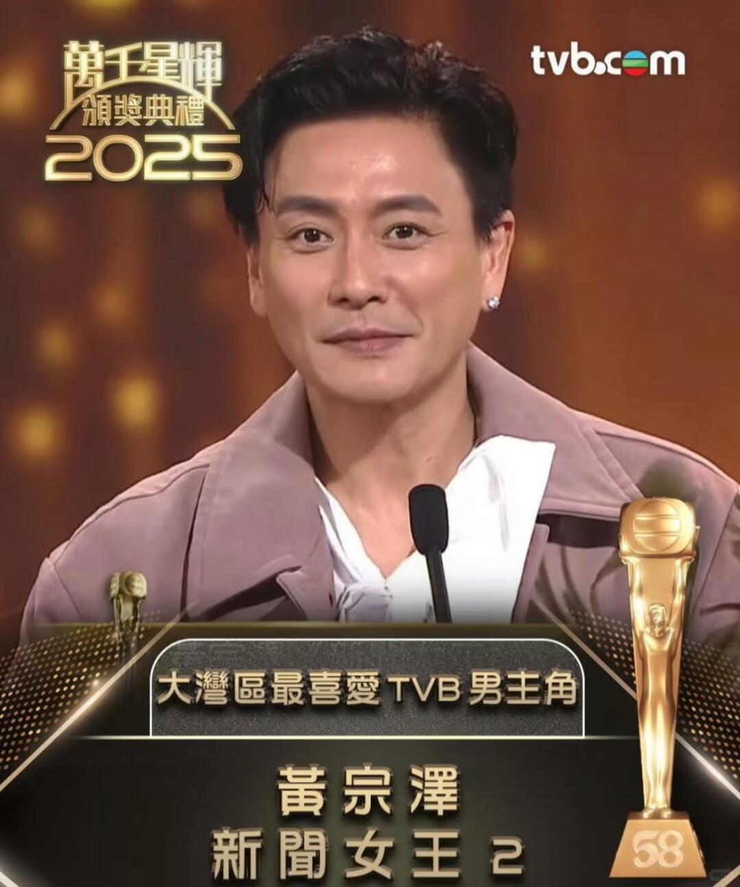 黄宗泽拿奖的反差感也太绝了!谁能想到同一场颁奖礼,他能演出两种状态?先拿大湾区视帝的时候,那叫一个从容淡定,起身、上台全程不慌不忙,说获奖感言都带着股“常规操作”的松弛感,弹幕全在刷“bosco这是把淡定刻进DNA了?” 结果反转来得猝不及防!当主持人念出TVB本土视帝也是他的名字时,刚才还云淡风轻的黄宗泽瞬间破功,下意识捂住嘴,眼睛里的眼泪唰地就下来了,活脱脱一个“绷不住”的大型现场。上台领奖时更是止不住哭,一把年纪哭得像个拿到心爱玩具的小孩,这前后反差直接把网友笑到捶桌:“确认过眼神,是TVB的真爱没错了!大湾区奖是工作,TVB视帝才是情怀啊!” 别笑他“双标”,这眼泪里全是委屈和不甘。黄宗泽在TVB演了多少经典好剧啊!《我的野蛮奶奶》《潜行狙击》《护花危情》,哪个不是当年的爆款?可偏偏赶上TVB神仙打架的年代,林峰、陈豪、郑嘉颖这些实力派扎堆,他一次次陪跑,视帝成了多年的遗憾。 现在终于得偿所愿,哪怕有人说如今的TVB视帝含金量下滑,可对他来说,这是对自己在TVB多年付出的认可,是圆了青春的梦。网上舆论全是一边倒的心疼:“ Bosco等这个视帝太久了,哭成这样太好懂了”“当年他的演技明明不输任何人,早该拿奖了”。 怎么说呢?kennel有些奖项对明星来说,不只是荣誉,更是对过往付出的交代。就像黄宗泽,大湾区视帝含金量可能更高,可他最在意的还是TVB的认可,因为那里藏着他的初心和青春吧~