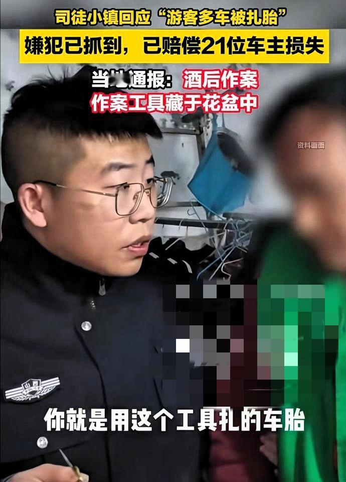 扎胎,赔钱,抓人?景区这波操作,可以说算是教科书式的做法了。 昨晚司徒小镇扎轮胎事儿总算有了结果。山西晋城司徒小镇外那个免费停车场,2号晚上一下子有好几辆车轮胎被扎,还是专门扎侧面,根本没法补,只能换新胎。 事情发生后,景区这边很快做出回应,对于发生的事情,也不是第一时间甩锅,而是承担责任。村书记周小明直接说,来玩的游客受了委屈,我们先赔。每人除了修车费,再给一千块。转眼就给21位车主赔了钱。 安抚好游客后,接着就抓人,警察查得也快,4号就把人抓住了。是个酒后闹事的男的,他承认就是冲着人多来的,工具藏在花盆里,事情就此被解决。 其实大家都很简单,只需要一个说法一个真相,景区此番先赔付游客损失,然后报警抓人,可以说就是奔着解决事情去的,这样一来,反倒把本来带来不好影响的事,处理成了正面宣传效果,真心不错!