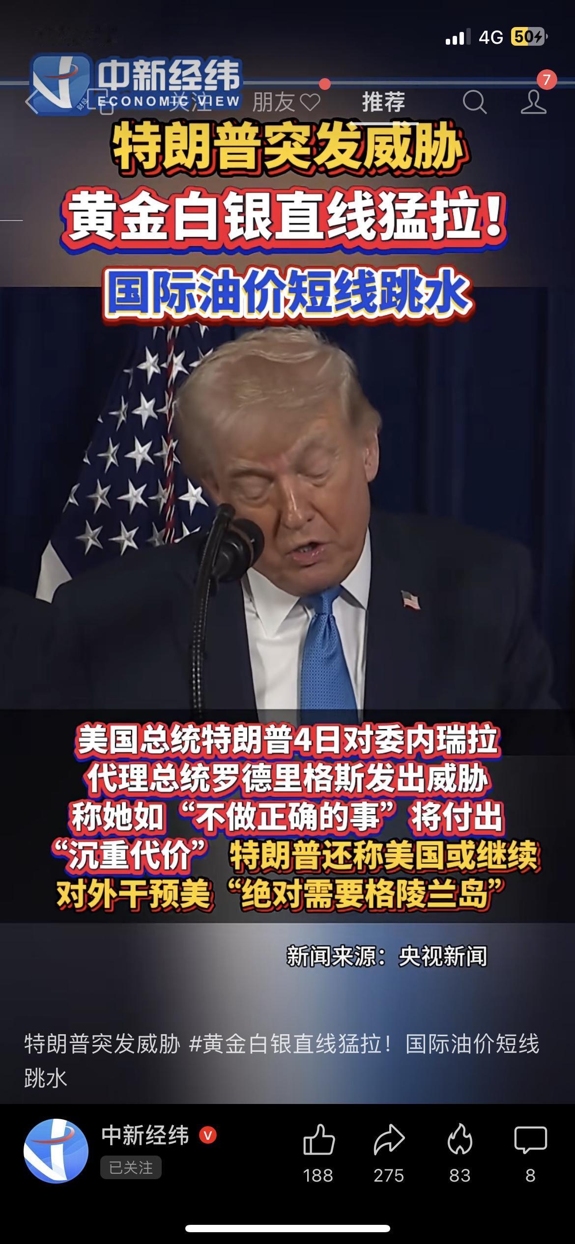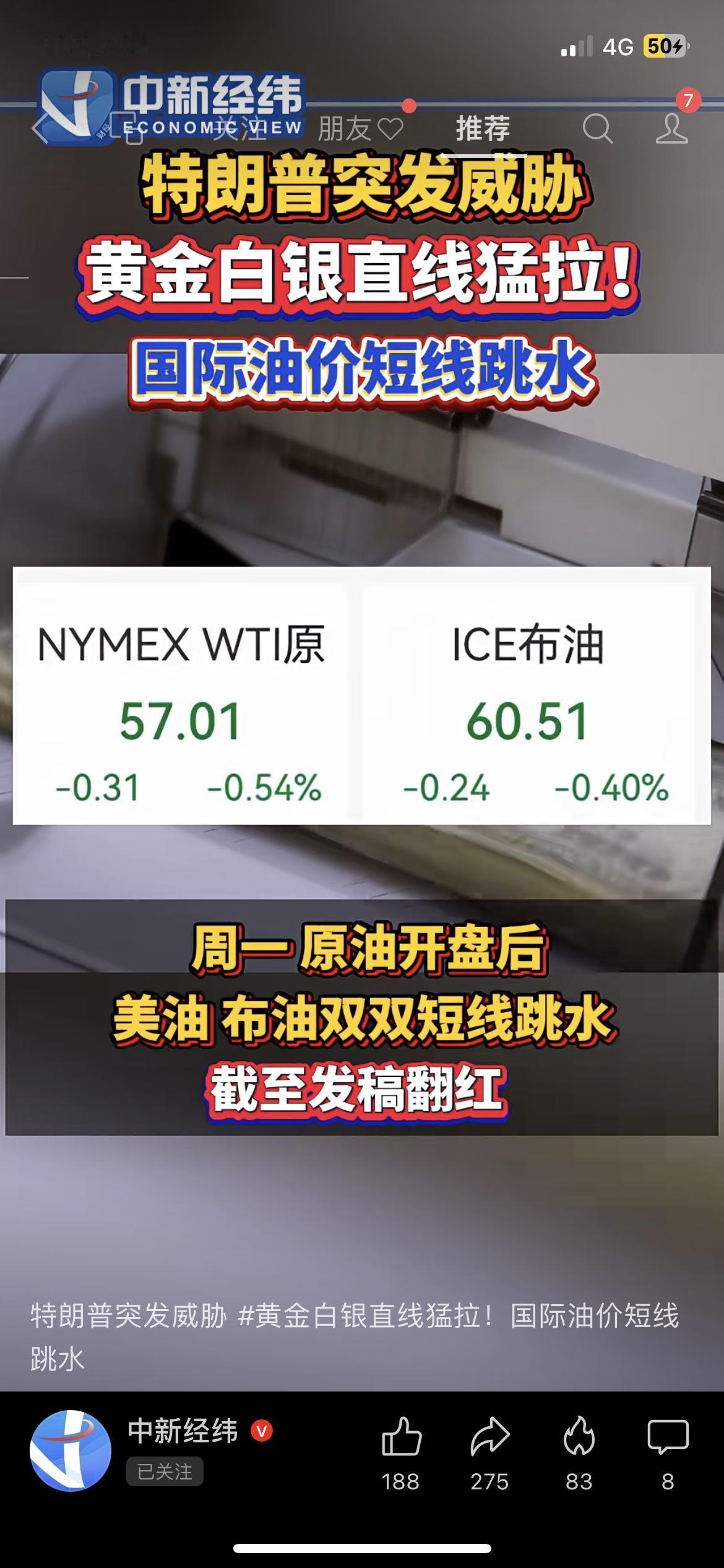 小区便利店老板说囤的黄金摆件涨了,点开行情才发现真的疯了! 1月5日现货黄金冲破4390美元,单日涨超1.3%,白银更猛,COMEX白银涨4.23%;另一边原油先跌后涨,美油一度跌到57.01美元/桶,布油60.51美元/桶,转眼又翻红。 这波波动全因特朗普威胁委内瑞拉,还放话要拿下格陵兰岛,地缘风险直接搅动市场。 你手里有黄金资产吗?觉得后续油价会跟着局势涨起来吗?