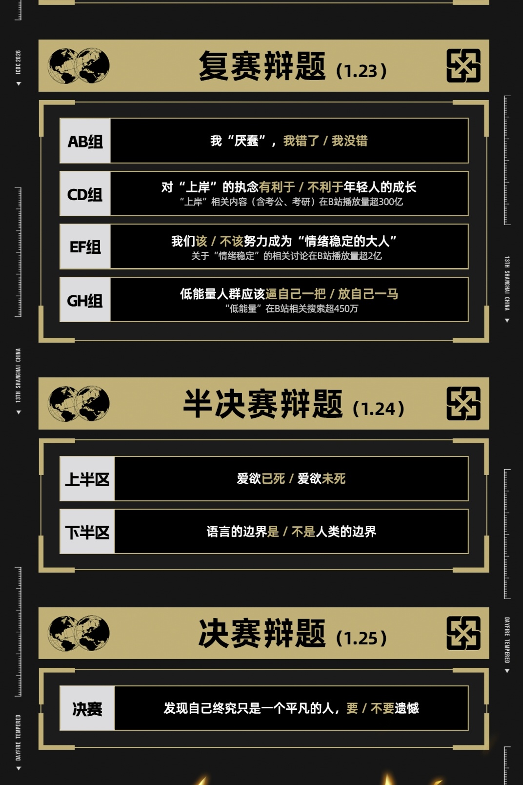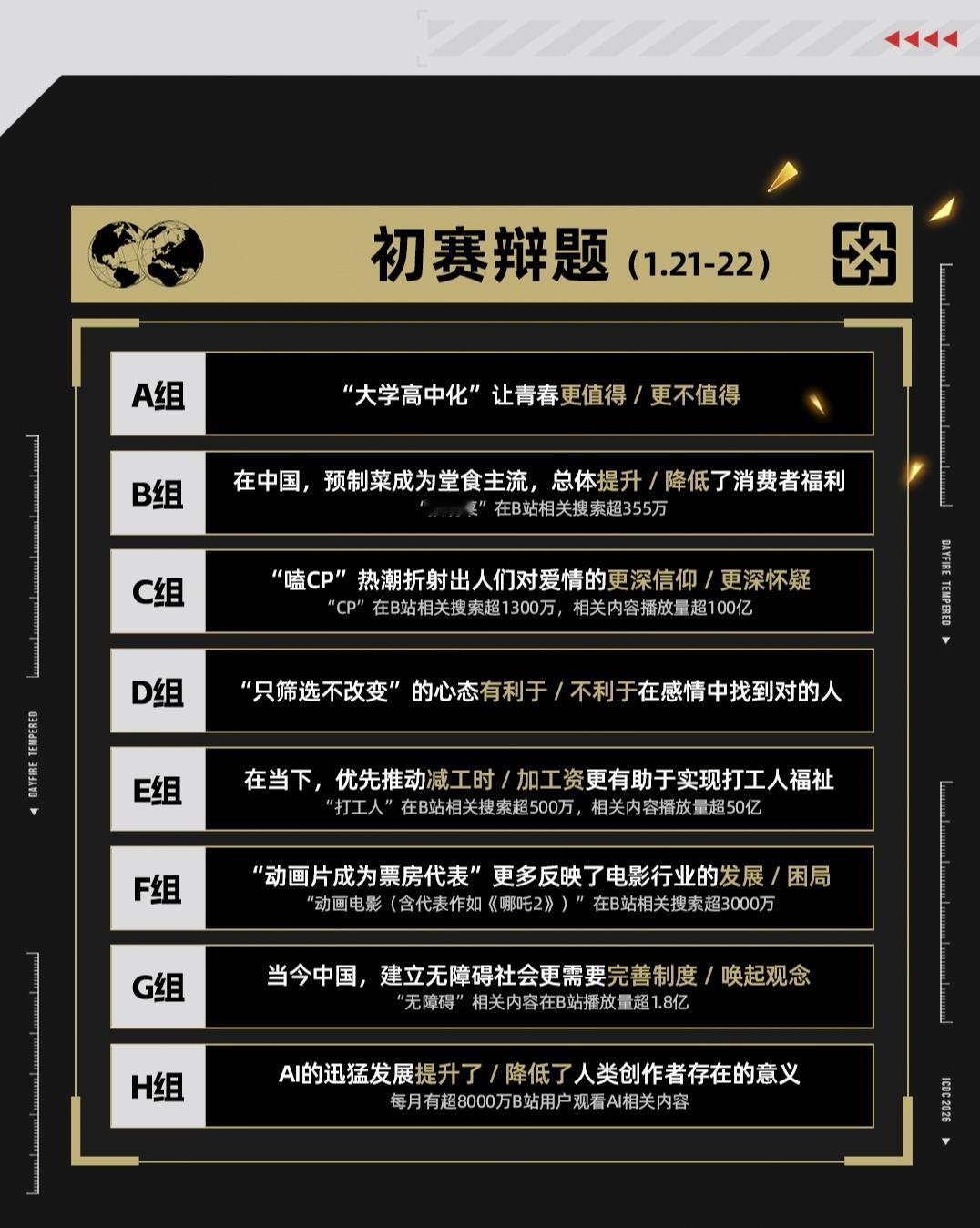 新国辩辩题每题都戳中我 要不说还得是新国辩,那些我们在日常生活中遇到的情绪问 题、选择问题,都被点出来,在新国辩被重新拆开、延展,逐步让人看见问题真正复杂的内核。