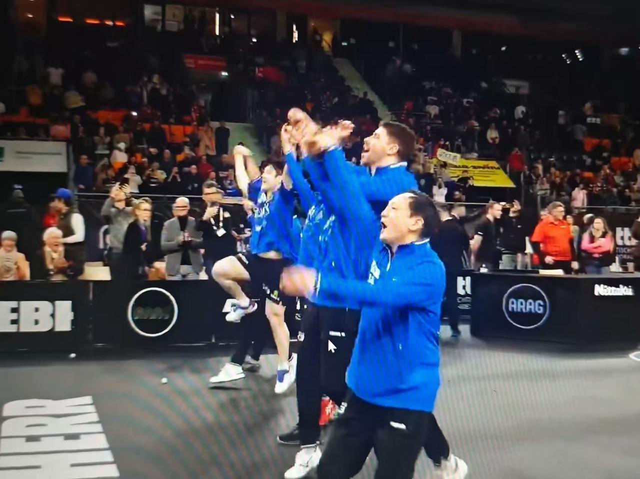 只要给樊振东一个舞台, 他就会将其推向一个史无前例的高度! 在刚刚结束的德国杯争夺战中, 樊振东7小时四场比赛, 一单2分, 率领萨尔布吕肯俱乐部豪夺冠军🏆 赛后小胖放飞自我, 开心的像个孩子, 跟队友们振臂牵手, 原地起跳, 我们的快乐小熊猫又回来啦[大笑] 是金子到哪都会发光, 即便在有限的条件下, 小胖也会让其蓬壁生辉。 “山不在高 有仙则名, 水不在深 有龙则灵”! ,