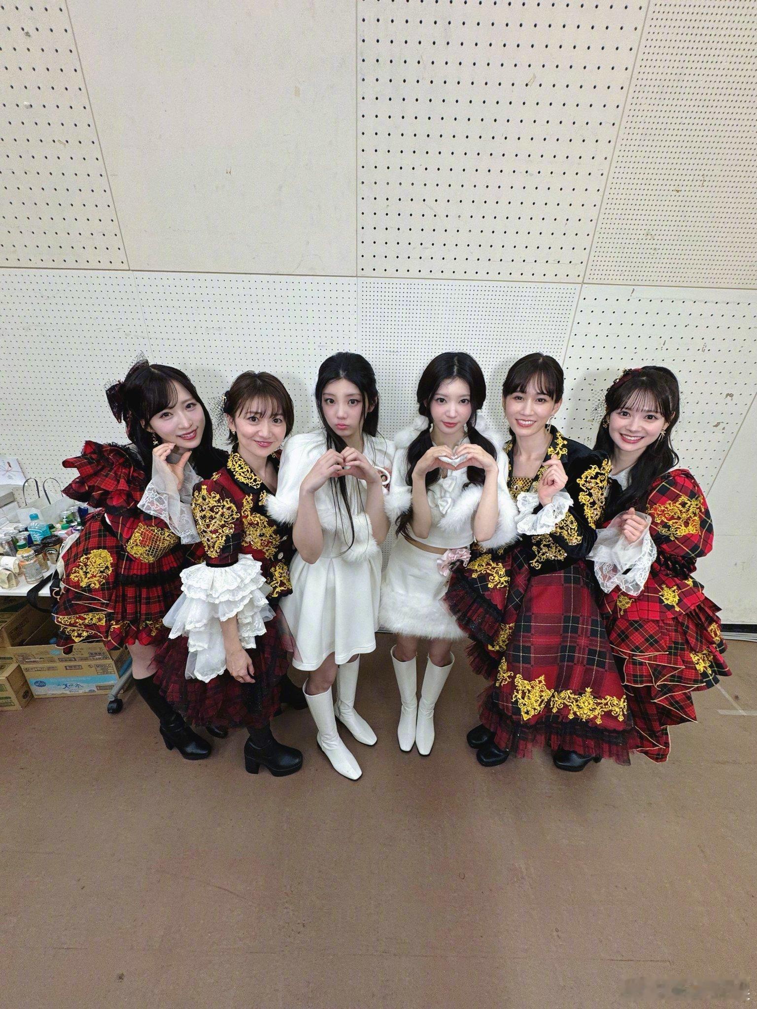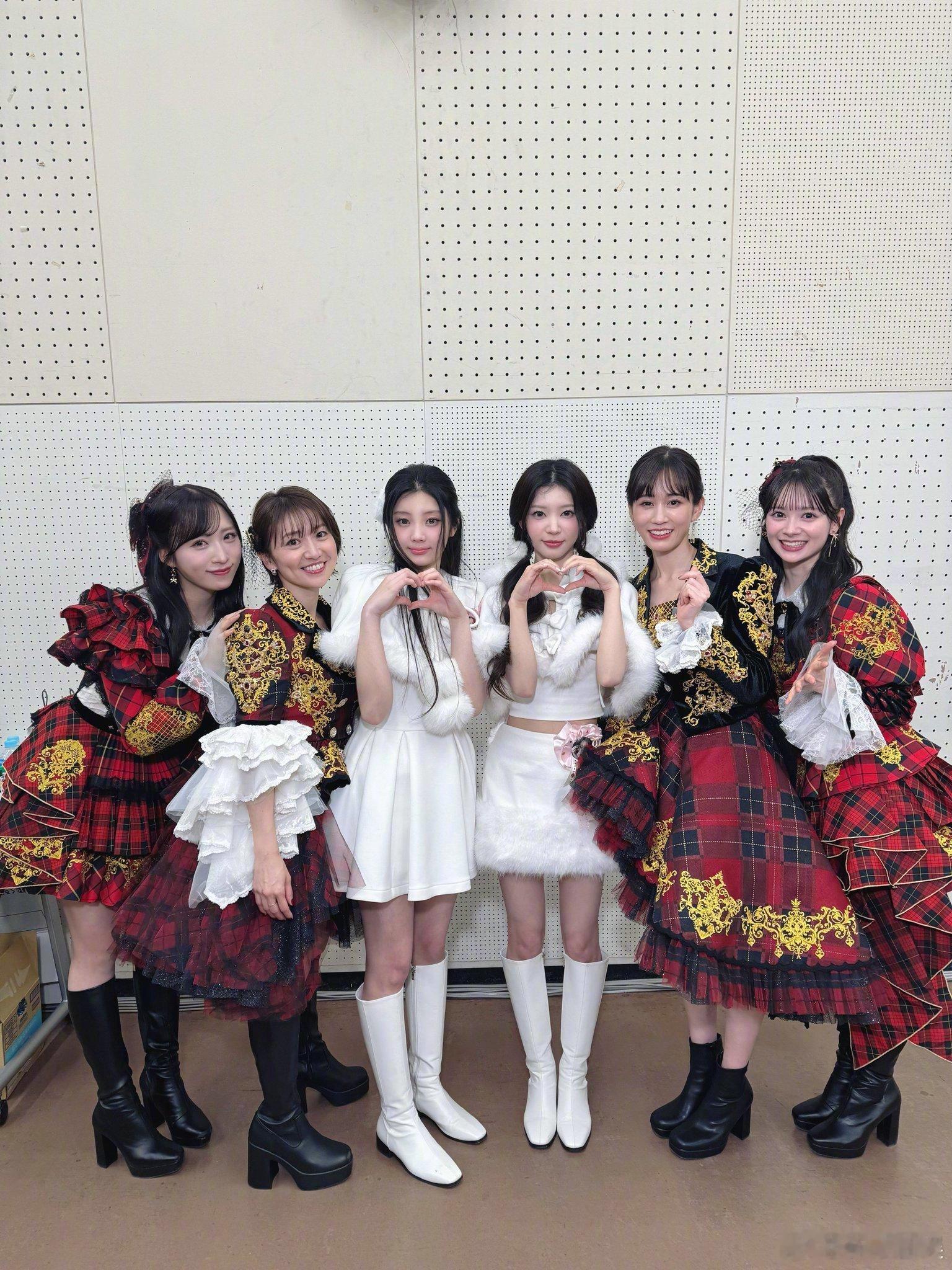 AKB48和ILLIT合照次元壁破了 《红白歌会》后台AKB48和ILLIT合照比心!这是什么程度的梦幻联动啊!