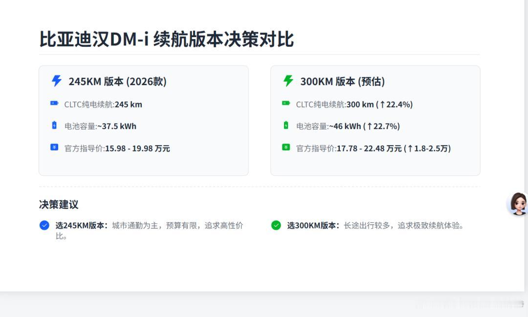 🚗汉dmi推300km续航?别只看现在,未来可能得卷! 不少观点认为汉dmi短期不会上300km版本,原因无非是竞品没跟上、用户对价格敏感、比亚迪内部车型要平衡。但市场真的这么静止吗? ⚡️分析: 1️⃣ 技术迭代比想象快 电池成本逐年下降,锂价一旦松动,300km版本未必会大幅提价。比亚迪的刀片电池产能持续爬坡,规模效应可能让长续航比预期来得早。 2️⃣ 用户场景在变化 “家里有桩就不需要长续航”是个误区。周末跨城出游、临时长途通勤的需求正在增长,200km和300km的体验差距,在高速亏电时尤其明显。 3️⃣ 品牌向上需要“旗舰标杆” 汉作为王朝系列旗舰,续航若一直停留在200km+,难免被后来者超越。推出300km版本不一定为走量,而是拉高价值感,带动全系关注度。 💡总结: 市场从不等人。如果比亚迪只想守成,当然可以维持现状;但若想持续引领,长续航技术储备必须亮剑——也许不是现在,但绝不会缺席。 比亚迪汉dmi 新能源车真实续航