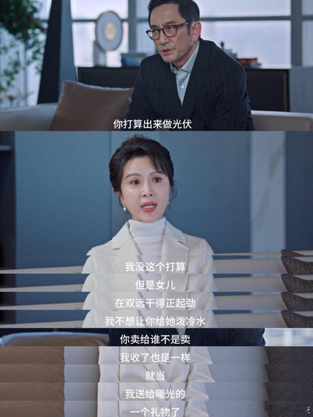 曦光,到底往哪边拜,才能拥有这样的妈妈呀?信女在此立誓,愿老公一生吃素,换我下辈子也要有一个这样的妈妈!曦光妈妈是我在电视剧里看过蕞蕞蕞好的妈妈了,没有之一。一开始曦光爸爸希望曦光去自家公司,继承家业;但妈妈耐心听取曦光的想法,在女儿还懵懂迷茫的时候给于建议,希望她先做自己,等到自己有能力的时候,再面对爸妈婚姻情感破裂导致的拉扯。在和聂程远婚姻破裂后,面对曦光爷爷奶奶,让曦光带礼物给他们,做足了脸面,教会女儿人情礼节;对面小三插足的婚姻,她不是去和小三撕扯,而是直接抛弃渣男,果断离婚,分得一半家产;得知有人追女儿,也是考察过对方基本情况以后,由孩子们自由发展;得知女儿谈恋爱,也只在乎女儿开不开心;看到那一幕真的要泪目了,有没有?在女儿工作上遇到问题,回家问她的时候,会像朋友一样,给予支持。既教她工作方法,又教她经商之道。就是在任何时候,把女儿放在第一位,女儿的心情,女儿的成长,女儿的幸福,女儿的未来骄阳似我