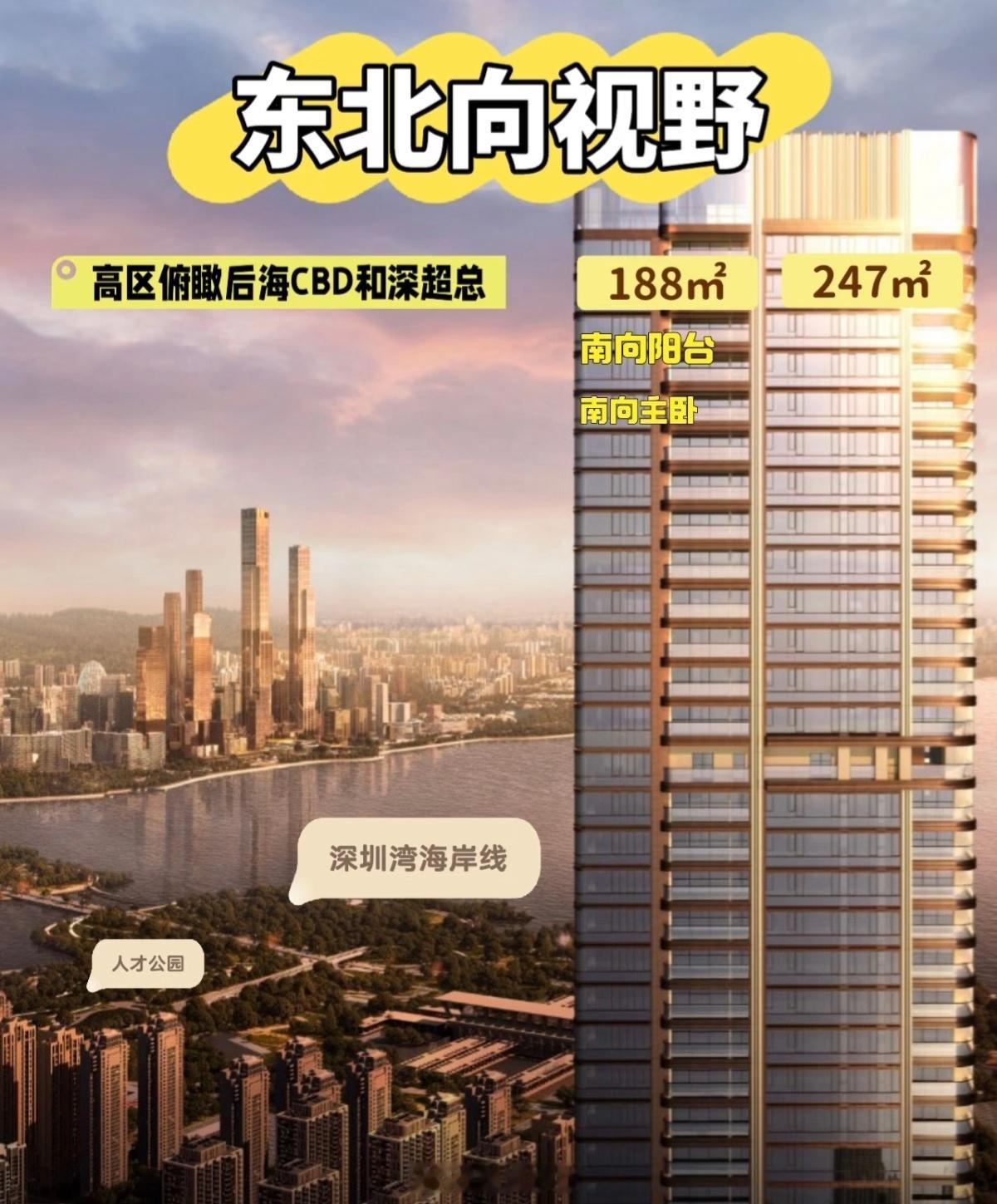 南山后海招商玺即将推出1栋2单元100多套房。总高42层,3梯3户,面积为188、237、247平米,户型均为类板式设计。多了个188和247户型,楼层更高,景观面更多了。 深圳