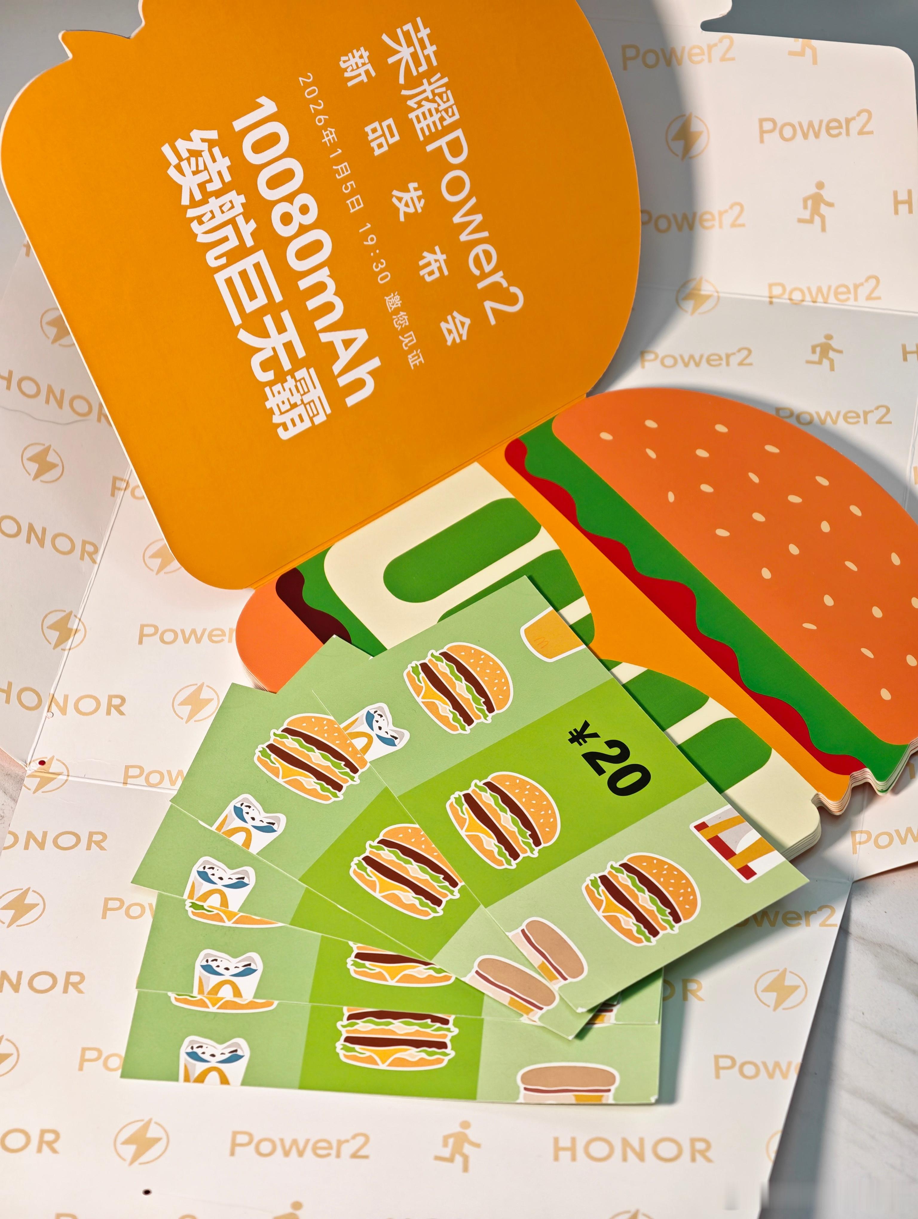 荣耀Power2的邀请函真“食用”啊,是麦当劳的礼券,就像荣耀Power2的电池一样,量大管饱,今晚就要发布了,猜猜价格是多少