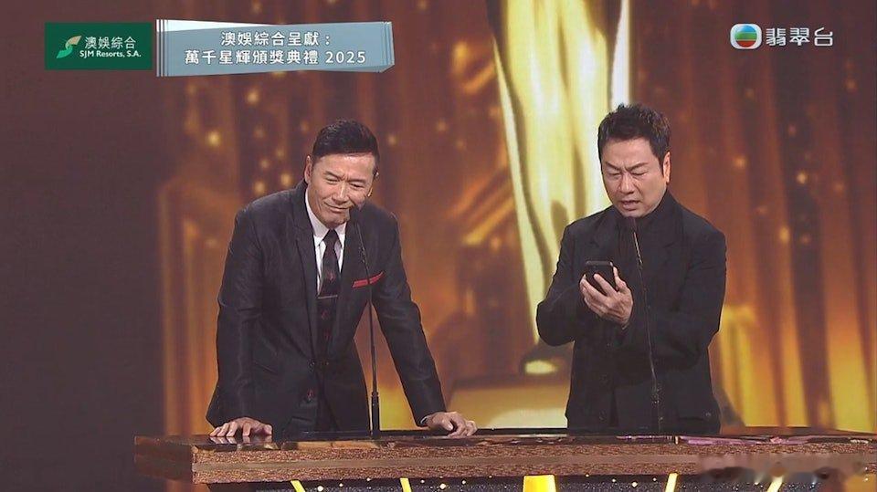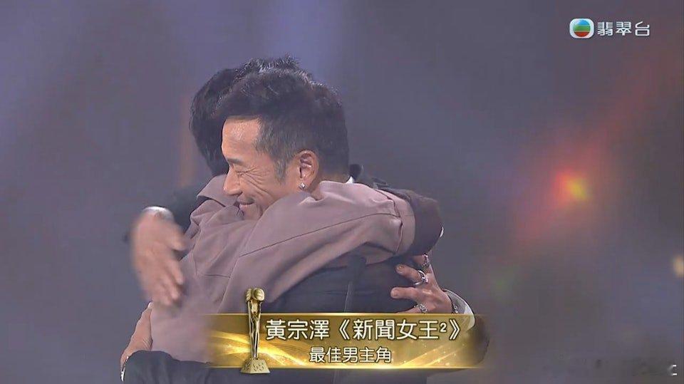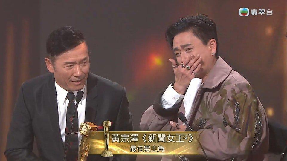 TVB《萬千星輝頒獎典禮2025》今晚(2026年1月4日)於澳門上葡京綜藝館隆重舉行,當中「最佳男主角」由苗僑偉(三哥)及黎耀祥頒發獎項,而已奪得「大灣區視帝」的黃宗澤(Bosco)再下一城,憑《新聞女王2》中Kingston一角奪得視帝!當三哥宣布賽果的一刻,黃宗澤即激動爆喊!黃宗澤上台發表得獎感言時十分激動,更淚流滿面:「我頭先攞完大灣區以為冇得再上嚟㗎喇,所以講到亂曬坑。」他自言十分幸運,遇到很多很好的前輩:「多謝我台下另一個阿媽啦,我百厭到咁都當我仔咁錫,珍姐啦,鬧咗我咁多年,但每一句說話都係想我好。」