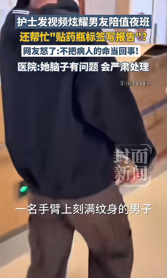 “必须严惩!”1月2日,山东青岛,一护士值夜班时,擅自将男友带进病房区,不仅让男友代写医护记录,甚至还让他直接参与配药,护士则在一旁将整个过程用视频拍下,发到网上炫耀,本想秀一波恩爱,不料却引发众怒!医院:她脑子有病! “我男朋友对我这么好,一定要发到朋友圈里让大家羡慕一下!” 凌晨,医院走廊寂静,只有偶尔推门声和监护仪的滴答,护士站的灯光下,她拿着手机,男友站在操作台旁,手臂刺青在白色灯光下特别扎眼。 她一边摆弄手机,一边笑着让男友帮忙贴输液标签,嘴里还不忘念叨,“你可得认真点,别给我整错了。” 男友一边低头写着护理记录本,一边回头冲她挤眼睛,“你放心吧,谁还不会写字啊!”他语气里带着点无所谓,也带着点挑衅。 她在旁边拍得兴奋,甚至还补了句,“你可真是我夜班的搭子,别人家男朋友都没你贴心。” 护士台上,病历本、药瓶、输液贴混成一团,角落里,她的水杯旁边赫然摆着一包香烟,男友熟练地撕开一卷贴纸,一边贴一边嘀咕,“这玩意儿也没多难嘛。” 整个过程,她一直拿着手机录,嘴角扬着,像是发现了什么新鲜事,完全没意识到危险。 但这段“恩爱”视频,很快成了全网众怒的导火索,1月2日深夜,视频刚发出没多久,评论区炸了。 有网友质问:“这是医院还是你家客厅?”“你把病人当什么了?”有人截图留证,有人直接@医院官方账号,没几个小时,医院电话就被打爆了。 第二天一大早,医院内部群彻底炸锅,有人私下吐槽,“她平时就吊儿郎当,谁敢让外人碰药?”还有同事直接说,“这胆子大到天上去了。” 院方临时开会,领导黑着脸拍桌子,“谁给她的权利?这叫拿生命开玩笑!” 医护行业的铁规矩,是不能让外人参与任何医疗操作,配药、书写护理记录,每一步都关系到患者的命,任何一步出错,后果都不是一句“对不起”能解决的,可她却把这些当成了“情侣互动”的道具,只为刷个存在感。 “她脑子有病!”这是院方一位中层领导在接受采访时说的话,虽然用词激烈,但不少医护听了,竟然点头默认,“太丢人了,丢的是整个行业的脸。” 有网友留言:“我们把命交到你们手里,是信任你们的专业和责任心,你这么干,是把我们当成了试验品吗?”还有一位患者家属写道,“我母亲去年在医院抢救过,护士忙得连水都顾不上喝,看到你这样的人,真的心寒。” 事件发酵后,官方也高度关注,涉事护士已停职,相关部门已介入调查,并且也向网友承诺一定会依法处理医院和相关人员。 但这件事远不止一个人失职这么简单,医院夜间安保形同虚设,外人能随意进出病房区,说明管理制度早就松弛了,医院内部有护士私下说:“我们都知道夜班容易松懈,但谁敢这么明目张胆?” 其实,这种现象在一些二三线城市的私立医院并不少见,夜班人少,监管薄弱,很多地方靠自觉,可一旦出事,责任就会像雪球一样越滚越大。 更让人后怕的是,倘若那晚有病人因为配药出错发生意外,这事还能只是停职处理吗? 这件事一出,同行群里不少人主动自查自纠,院方也加强了夜班巡查,有人说,“她是个反面教材,提醒我们千万不能忘了底线。”也有人反思,“医院不能只靠信任,制度和监督必须跟上。” 或许,正是因为这次的“炫耀”,才让更多人看清了医疗行业的风险和脆弱,每一个操作、每一个签字,背后都是一条鲜活的生命,只有守住底线,才能守住信任。 故事的最后,那段炫耀的视频成了她职业生涯的终点,也成了整个行业的警钟,夜色里,护士站灯光依旧,只有那包烟和那本护理记录本,默默提醒着后来人:生命不是儿戏,任何一步都不能出错。