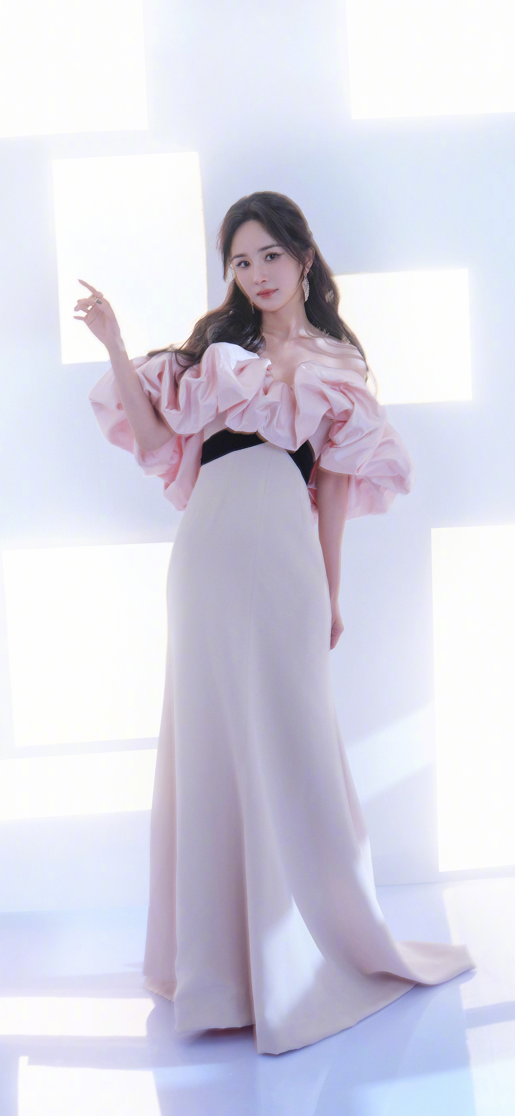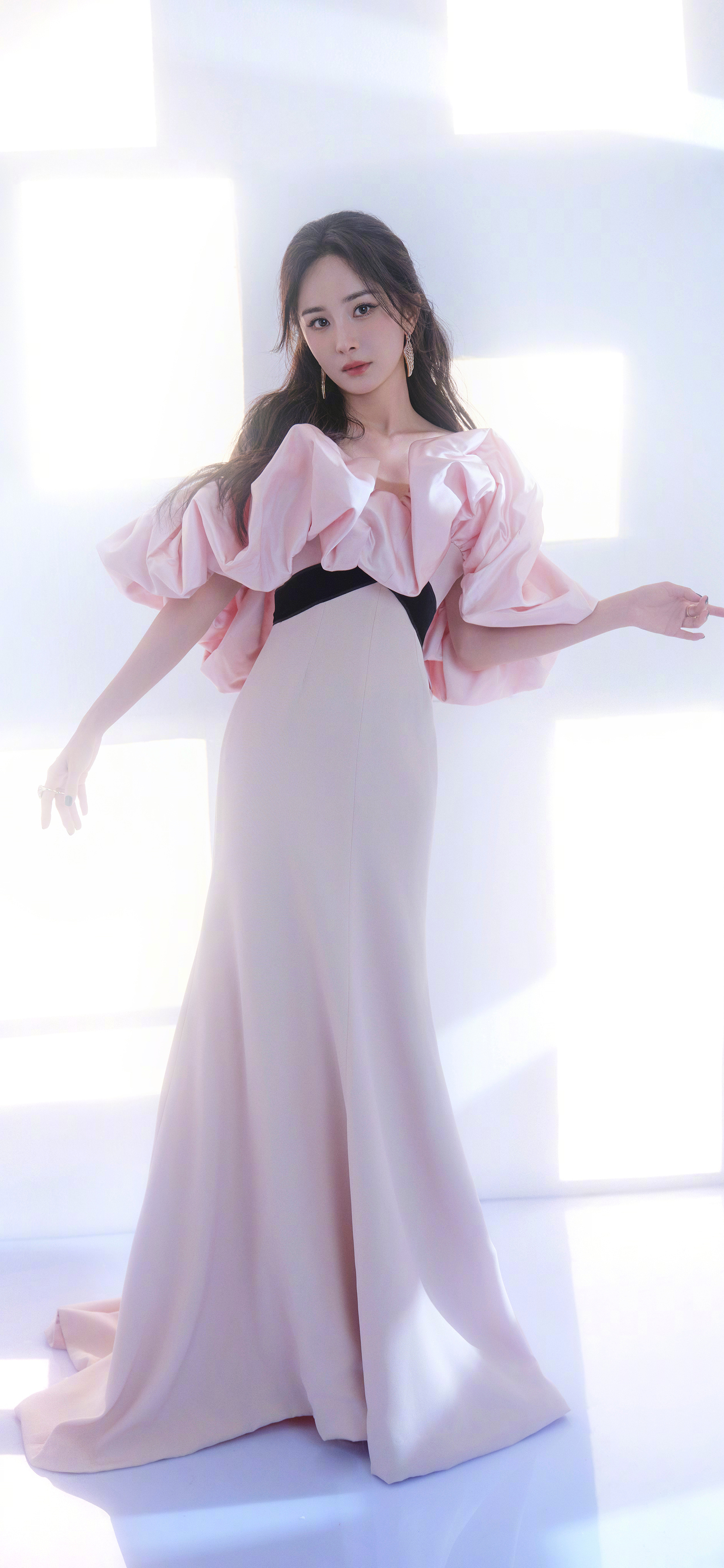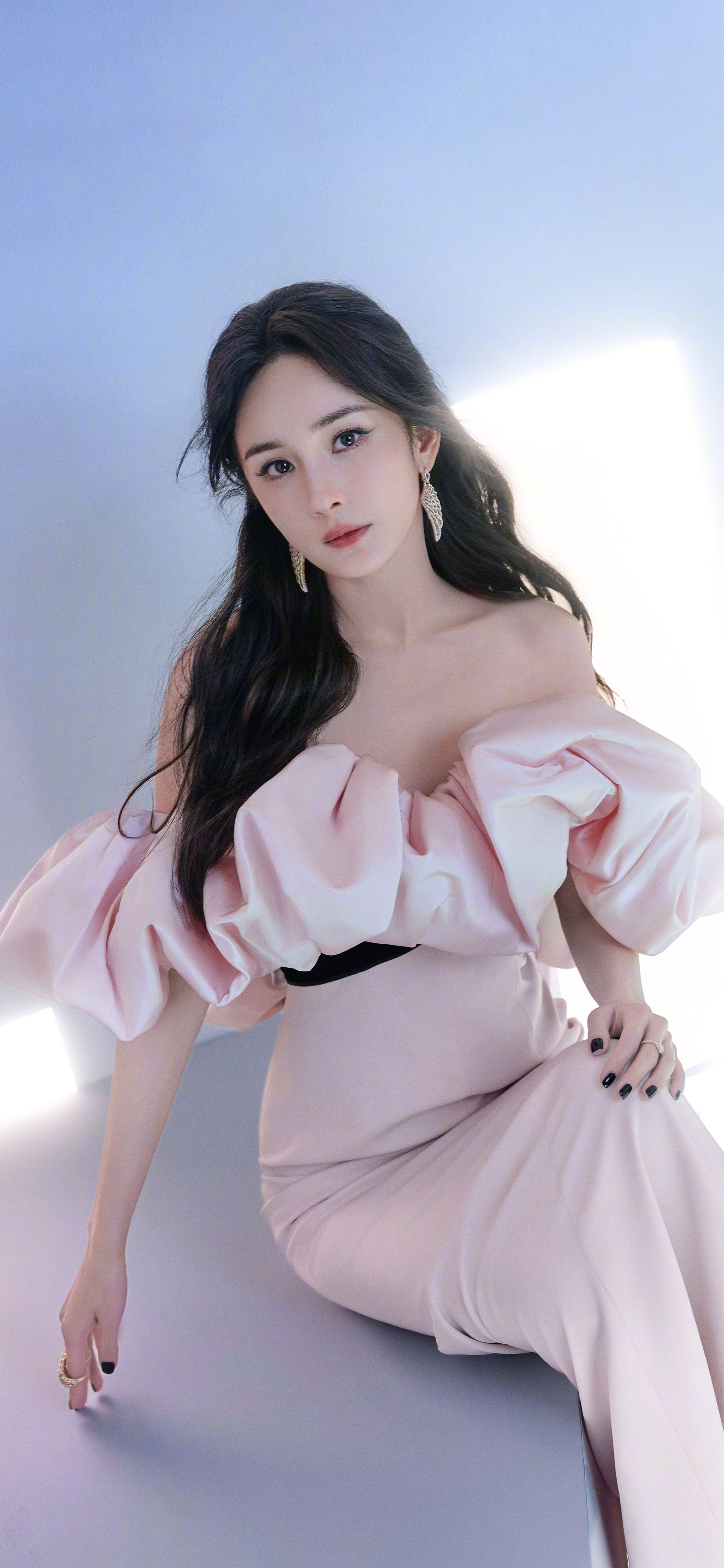 杨幂姐姐,柔美粉裙妆造,手机屏保来了。杨幂
