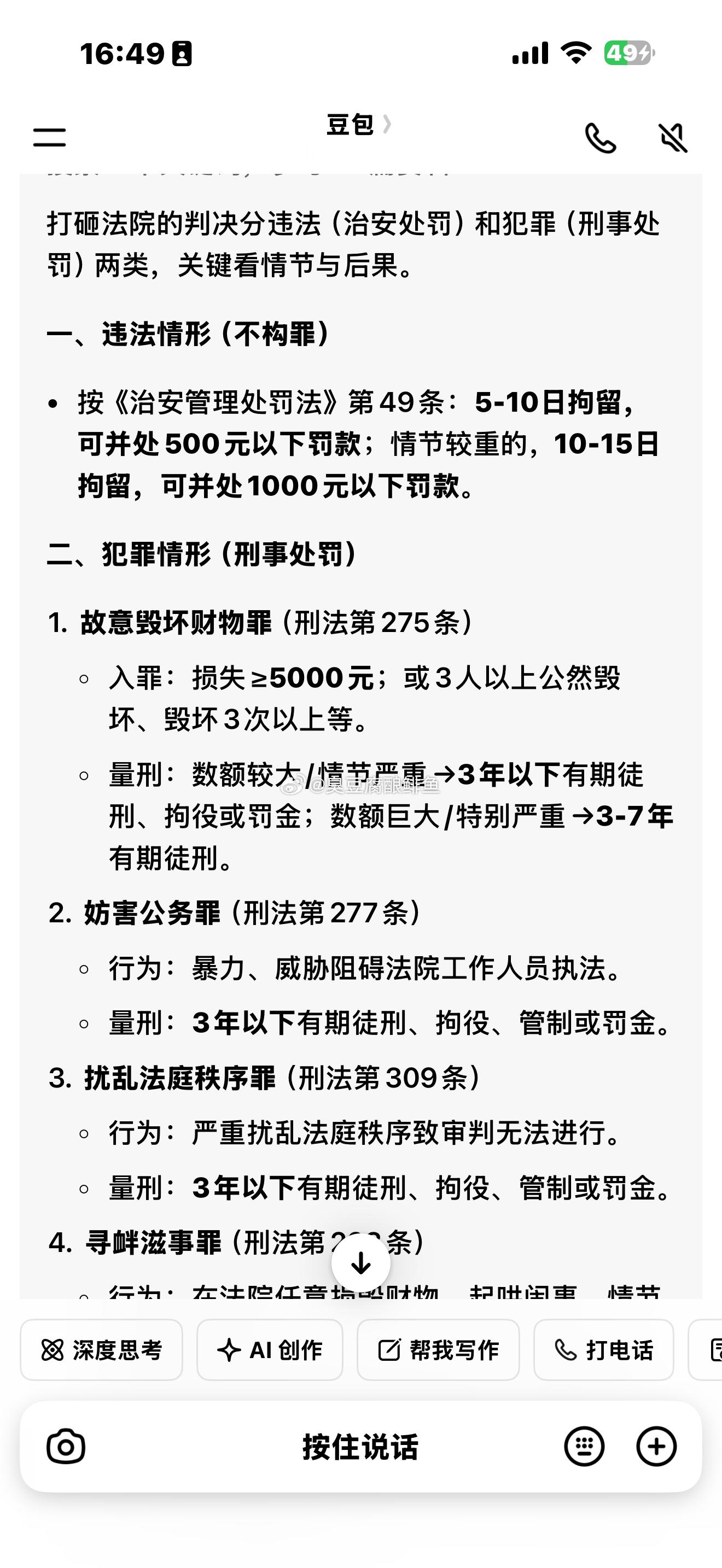 法院打砸,造成损失。最后知心姐姐来了。不知道换一个会不会也这样