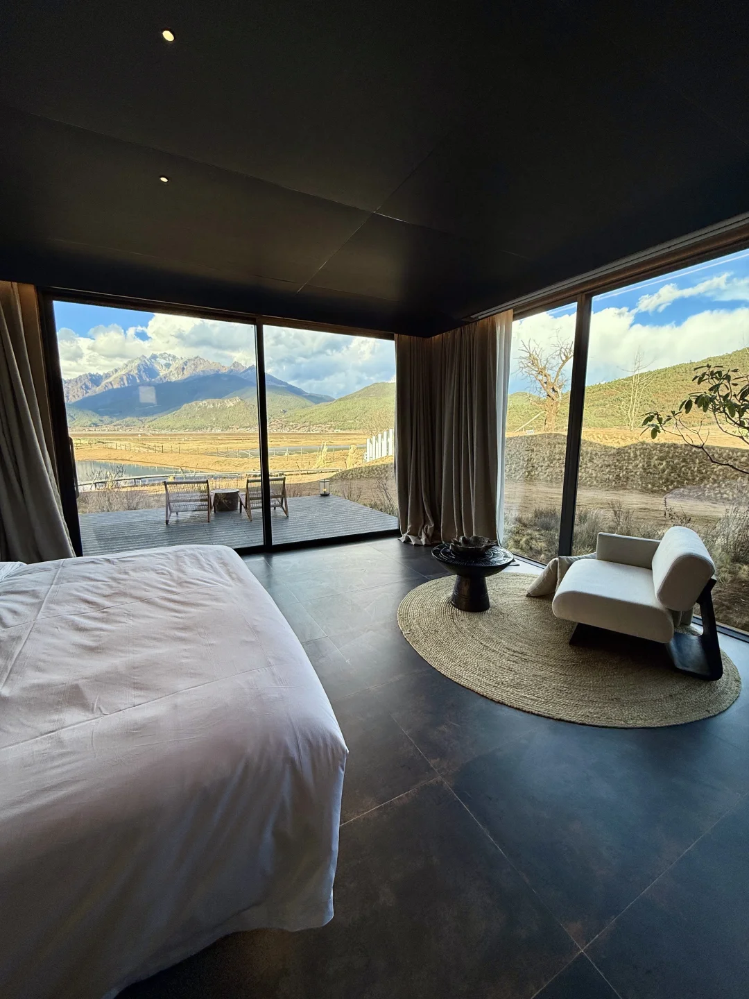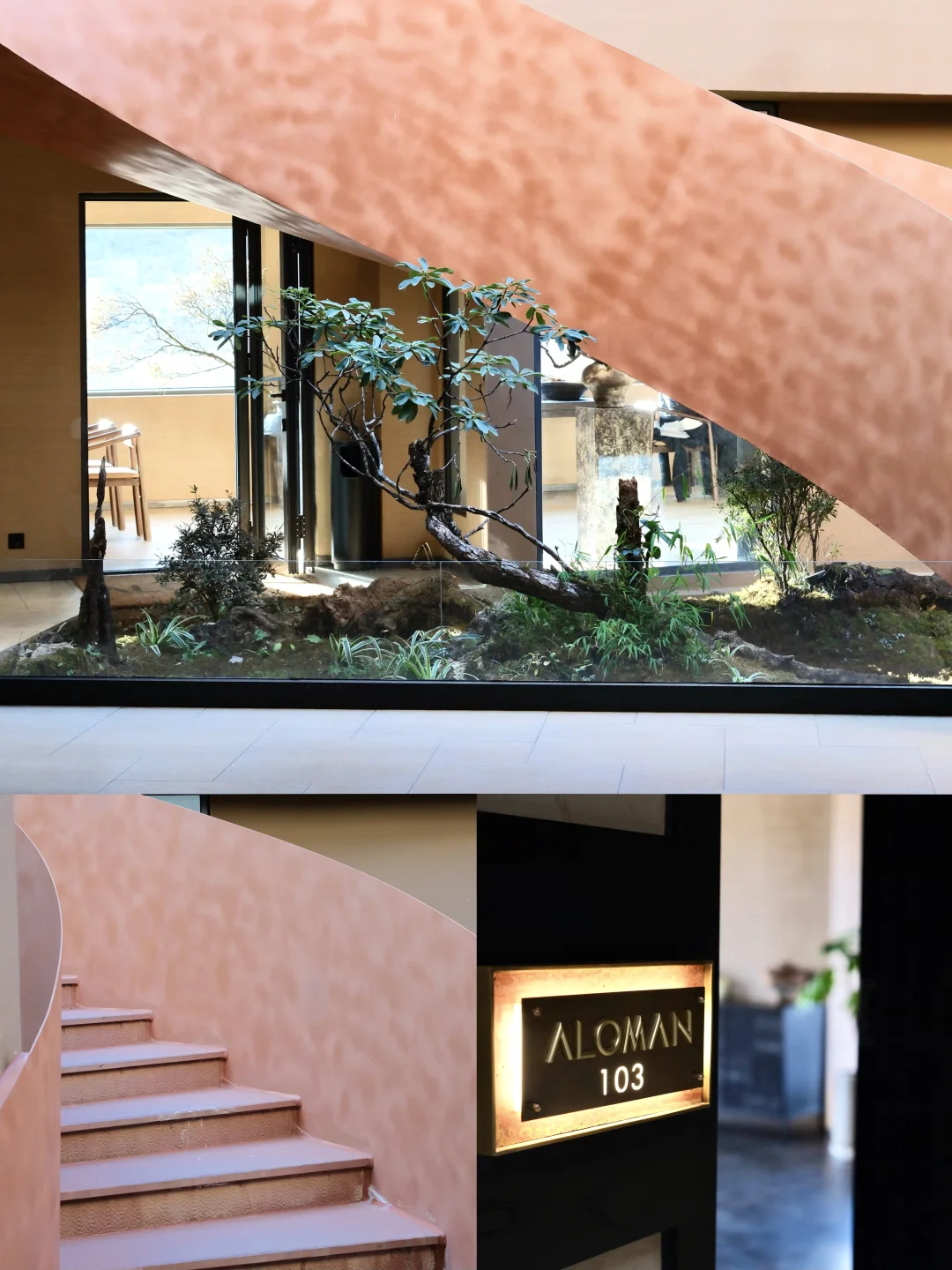 走过长长的木栈道,进入酒店公共区域,回身一望,酒店的全景落地门就像一幅油画框🖼️