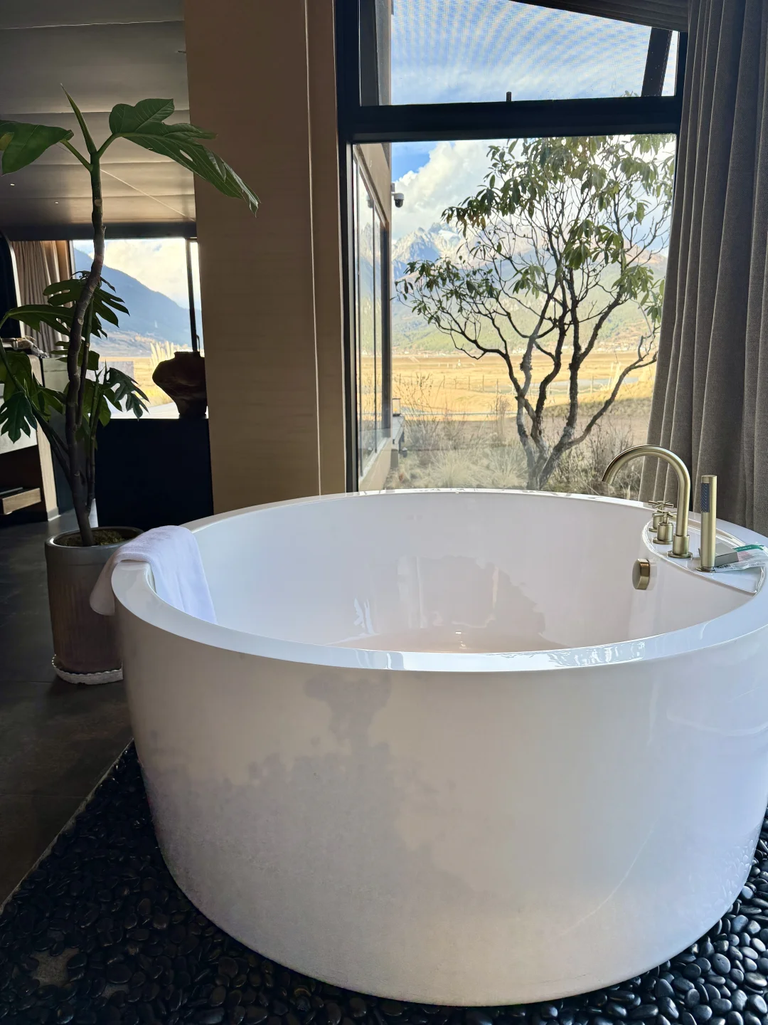 房间的设施跟回家了一样,不仅有地暖、空调,还有景观浴缸和宝格丽的洗护!床垫舒服到想回家换同款!