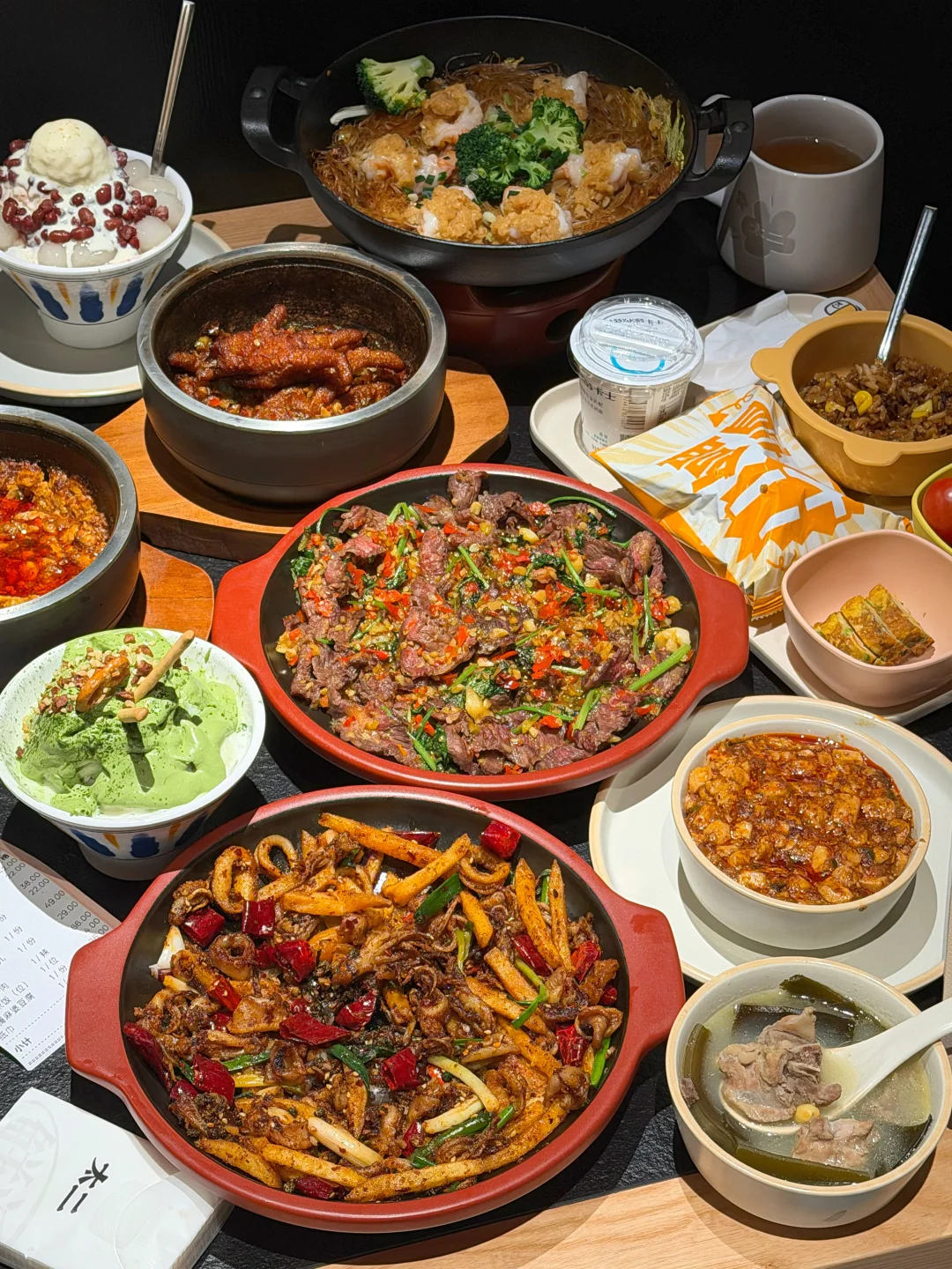 抹茶&红豆丸子绵绵冰、好绵密!口感绝了,甜而不腻! 感谢本地人推荐的,明档现炒很有锅气! 地道湘菜,牛肉,石锅鸡爪,香辣鱿鱼… 菜品大碗份量足!真心平价吼吼吃🤤🤤 建议来长沙的姐妹们下高铁直奔这家(太二酸菜鱼)!