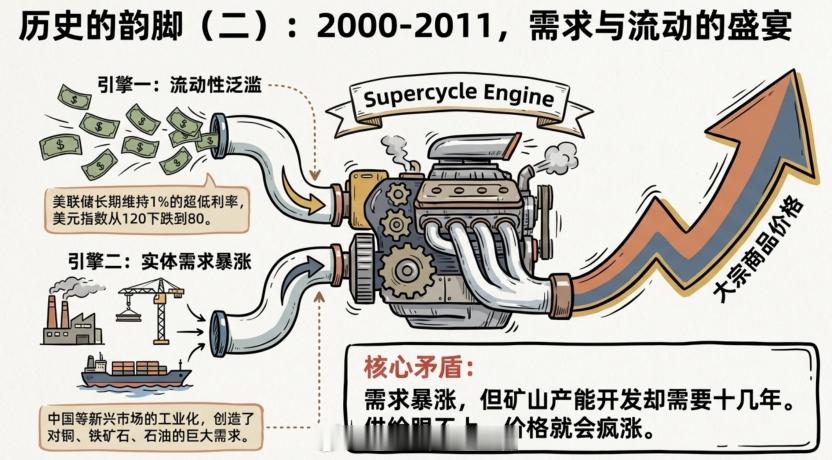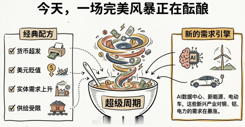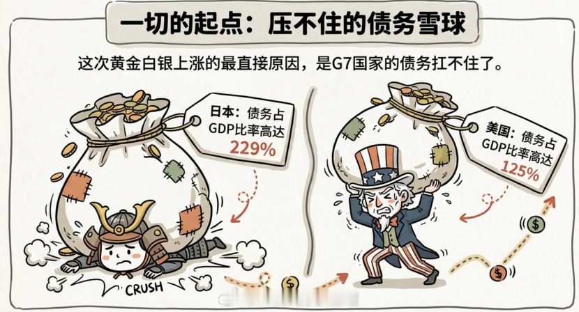 大宗商品的超级周期要来了开头先来说说市场。今天高开高走,4000点看样子不会是收费站了。因为不管是题材,还是消费医药,今天的表现都特别好,这种级别的普涨真的很久都没看到过了。4000多家上涨,每个人的手上基本都是红的。而且成交量今天预计在2.5万亿左右,如果下午再放量,那就有可能2.8万亿以上了,这已经是明显放量。在4000这种整数关口突破,放量是好事,这意味着筹码的交换,意味着未来上涨的基础更扎实。我觉得2026年都有机会去摸一下5000点,而且不说多了,4400肯定是能到的。所以现在的思路就是看多做多嘛。比如说之前跌了很久的医药,都可以继续拿着,今天这根大阳线出来,就是一个底部区间的信号,未来会再慢慢涨上去的。比如港股那边的创新药更猛,港股通医疗ETF富国(159506)今天都是6个点。医药就是这样,板块要起来都是整体起来,不会说单独丢下某一个人。至于仓位,可以看看我前几天写的这篇文章:「调仓报告」,里面介绍了十几个基金,都比较详细,今天应该都是涨的,回头看看今天组合的涨幅。而且除了A股,国际上的金子表现得也不错。金子和A股的关系不大,但是和地缘的关系会大一点。这几天大家也可能看到了美国一小时速通南美某国,具体的大家可以去搜索,我这里就不展开了。美国速通确实强大,但是这个事情也暴露出来了一个问题,那就是未来全球的安全感都会越来越缺失。因为美国亲手撕毁了自己制定的联合国宪章,也亲手打破了二战后的百年秩序。而当地缘问题频繁的时候,投资者第一时间想到的是什么?黄金!为什么?因为黄金不会说谎,不会违约,不会被冻结。这就是为什么2025年黄金的涨幅已经说明了一切。各国央行正在拼命买入黄金,而且美国他出手得越多,全球的不安就会以黄金的涨幅来呈现。比如金ETF(518680,A:009504,C:009505)这一段时间已经起飞了。它是什么?它是跟踪上海金规模最大的产品。上海金是上海黄金交易所推出的人民币计价黄金基准价格,是国内黄金市场定价体系的核心。他不仅是目前跟踪上海金规模最大的产品,而且他的管理费只有0.15%,属于同类产品最低的一档。它的跟踪误差极低,紧密跟随上海金价格。金价涨,它就涨。金价跌,它就跌。简单、透明、高效。现在美国在南美出手,这就是一个信号。相关国家的的石油出口已经因为美国的封锁而全面瘫痪,这会带来能源价格波动、通胀预期上升、地缘风险溢价持续。美国不停手,我觉得大宗商品也不会消停!...............很多人不知道,黄金白银的大涨只是一个开胃菜。因为大宗商品的超级周期要到了,看懂了你就能够抓住下一个周期的财富密码!点赞收藏,这可能是你能看到的最真实的大宗商品的分析!先说一下这次黄金白银上涨最直接的原因,那就是G7国家的债务扛不住了。尤其是日本和美国,日本债务占GDP的比率是229%,美国是125%。G7国家为了应对新冠超发了天量的债务,可现在疫情过去了,但是主要的G7国家,特别是美国没有去削减债务,反而继续加超发货币。为什么?因为他们如果不印钱,债务就会违约,金融系统就会崩溃。继续印钱,债务会越滚越大,但至少能再撑一段时间。可印出来的钱不会消失,只会转移。转移到哪里?转移到大宗商品。大宗商品是这些天量货币的蓄水池。因为几乎所有的大宗商品都以美元计价。这意味着什么?意味着钱印得越多,大宗商品涨得越快。历史上这个逻辑被验证过很多次。最典型的就是1971年。那一年,美元与黄金脱钩,布雷顿森林体系瓦解。美元彻底摆脱了黄金的约束,变成了可以随意印刷的纸币。接下来发生了什么?石油价格从1973年的平均每桶3美元飙升至1980年的每桶36美元,涨了12倍。黄金更猛,从1971 年 35 美元一盎司涨到 1980 年 850 美元一盎司,涨幅高达 24倍。而现在美元贬值的逻辑又回来了。美国能印得出美元,但是印不出哪怕一滴石油,哪怕一克黄金。而且更有意思的是,2022年俄罗斯的外汇储备直接被冻结了。这使得所有新兴市场国家的财政部长们都开始重新思考一个问题——把钱放在别人的银行系统里,到底安不安全?答案是:不安全。说冻结就冻结了。但黄金不一样。黄金就放在自己的金库里,谁也动不了。铜、石油、粮食也一样,这些实物资产是真正属于自己的东西。所以现在各国央行都在拼命囤金。而且很多国家的黄金储备占比其实还很低,跟那些发达国家比差得远。这意味着什么?意味着他们还会继续买。更重要的是,对全世界来说,钱是无限的,但是黄金白银是有限的,油田储量是有限的,农田面积也是有限的。你不可能像印钞票一样,想要多少就印多少。2000年到2011年的大宗商品超级周期就是最好的例子。那个时候美联储长期维持1%的超低利率,流动性泛滥,美元指数从120下跌到80,贬值超过33%。但这只是一个方面。另一个方面是新兴市场国家,特别是中国的工业化进程,创造了巨大的需求。铜、铁矿石、石油,这些工业原材料的需求暴涨。需求暴涨,但矿山产能开发却需要十几年,而供给跟不上,价格就会疯涨。大宗商品价格在2008年达到历史高点,涨幅惊人。现在呢?全球经济正在复苏,AI数据中心、新能源、电动车,这些新兴产业对铜、铝、电力的需求在暴涨。但矿山产能开发周期长达十几年,短期内根本无法快速增加供应。供给受限,需求上升,价格必然暴涨。而这一次和以前一样,所有的条件都具备了,货币超发
