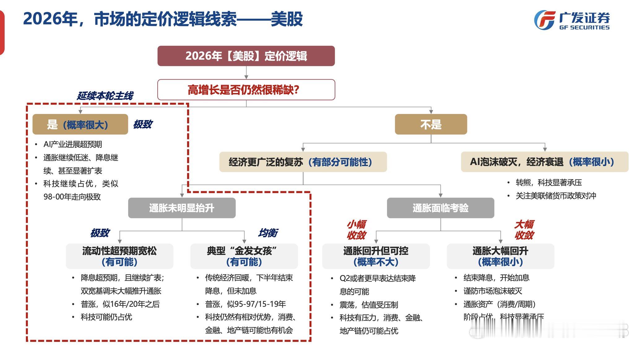广发策略刘晨明:2026年A股和美股的定价逻辑线索--> 稀缺的高增长能不能持续(持续,则走向极致)->有没有更广泛复苏(有,则相对均衡)->复苏之下美国通胀是否可控(是,则走向均衡)->中国内需是否显著复苏(是,则走向收敛)。