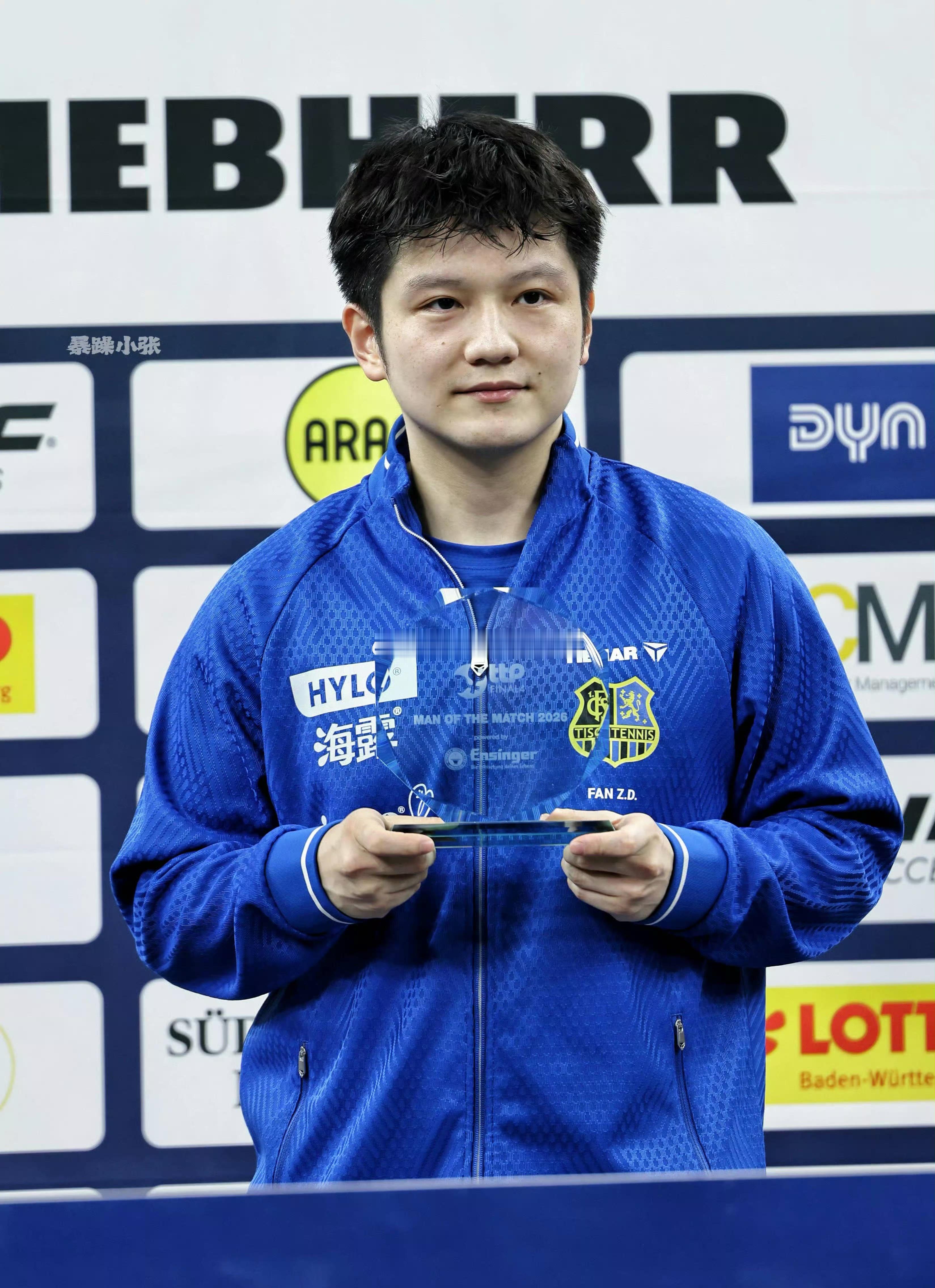 樊振东获德国杯MVP1月4日,樊振东在德国杯上演“铁血一单”传奇!7小时连赢4场独揽4分,助萨尔布吕肯夺冠,斩获留洋首冠与赛事MVP,5200名观众共同见证高光时刻。半决赛他连克阿比奥顿、户上隼辅,决赛零封奥恰洛夫、菲卢斯,4战全胜尽显统治力。暴力正手6连击名场面刷屏,此冠也是其职业生涯第115冠,获德国杯MVP!无排名仍称王,接下来球队将冲击三冠王,“凯撒·樊”的欧洲征程继续闪耀!乒出精彩 樊振东获德国杯mvp