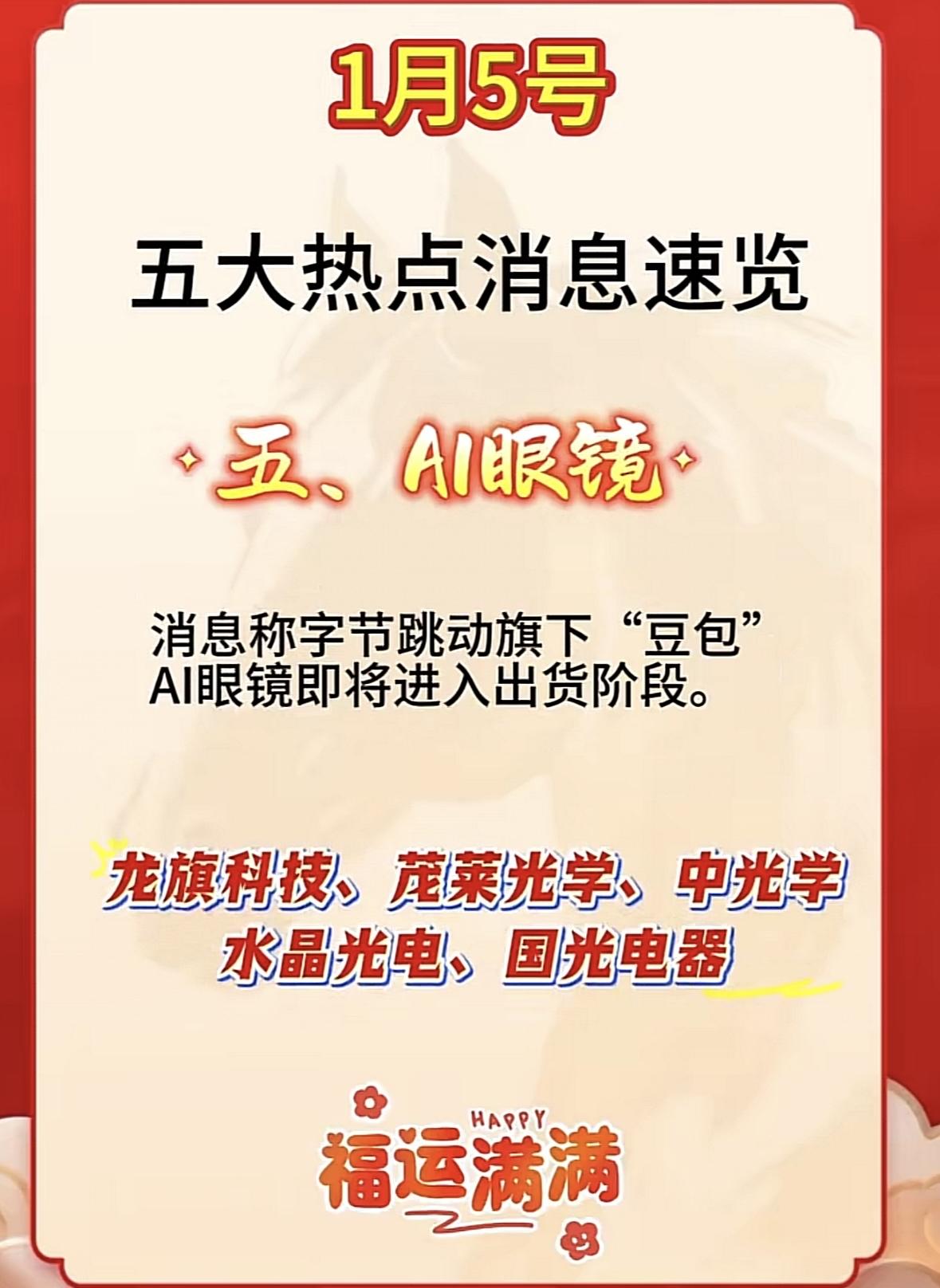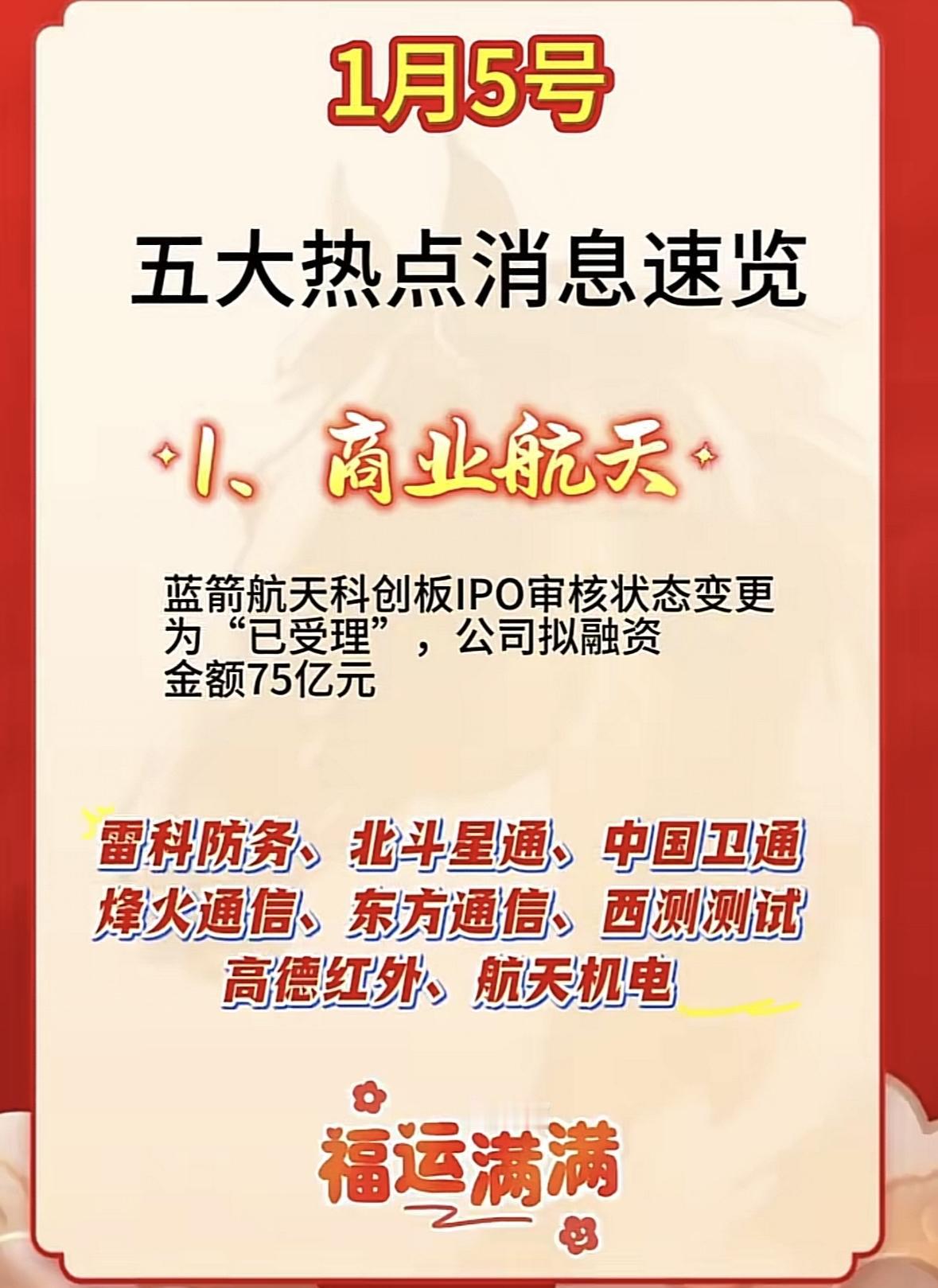 AI眼镜即将出货,科技革新来袭!🔥💡 1月5日热点:蓝箭航天IPO受理,商业航天融资潮起,多企业布局太空赛道,行业前景看好。