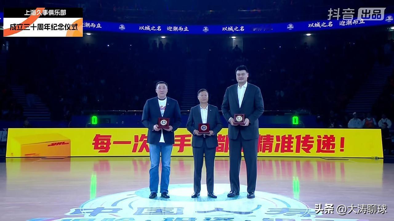 姚明、李秋平、章文琪三位队史功勋名宿出席上海男篮成立30周年典礼仪式!三人同时在