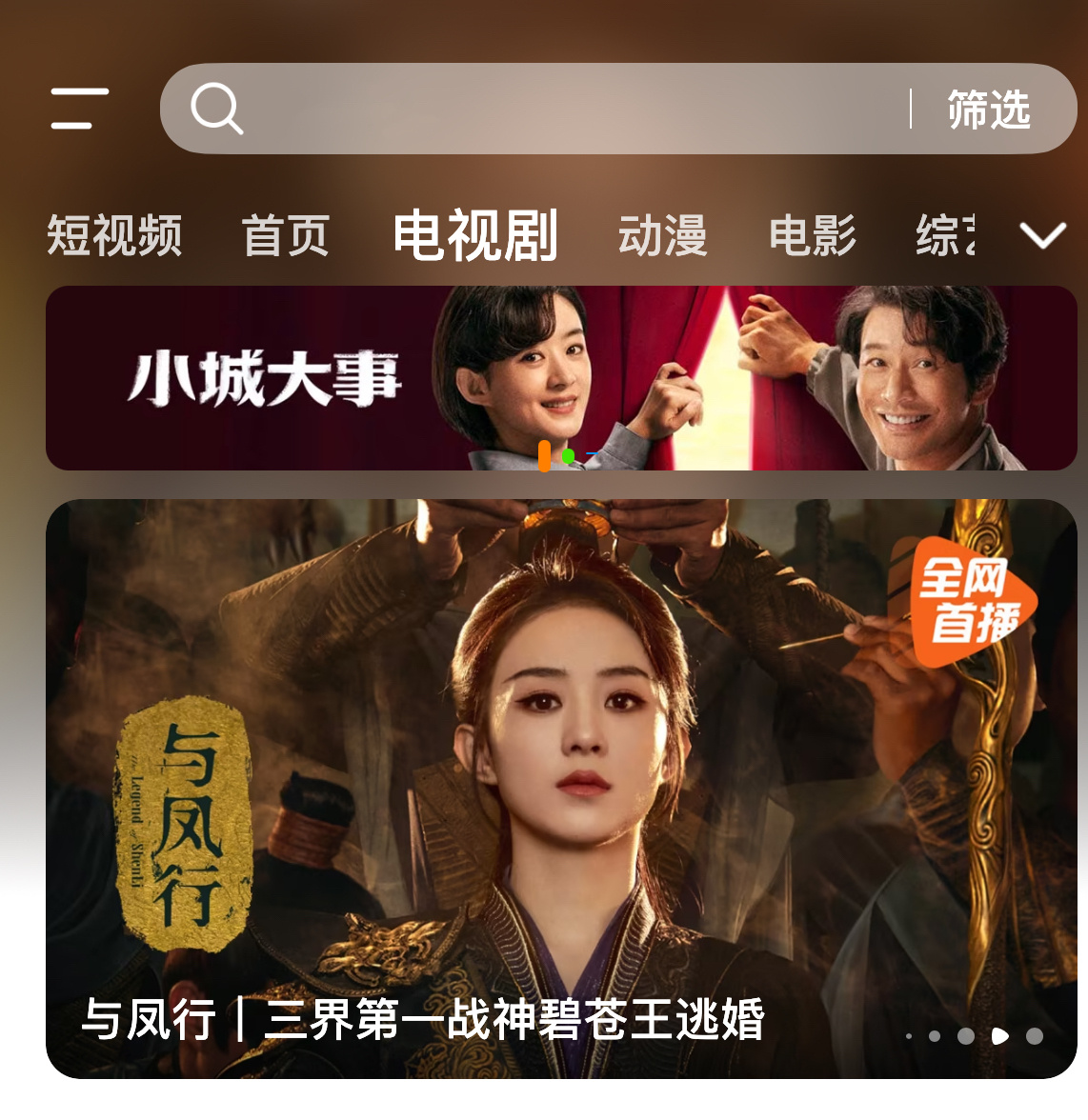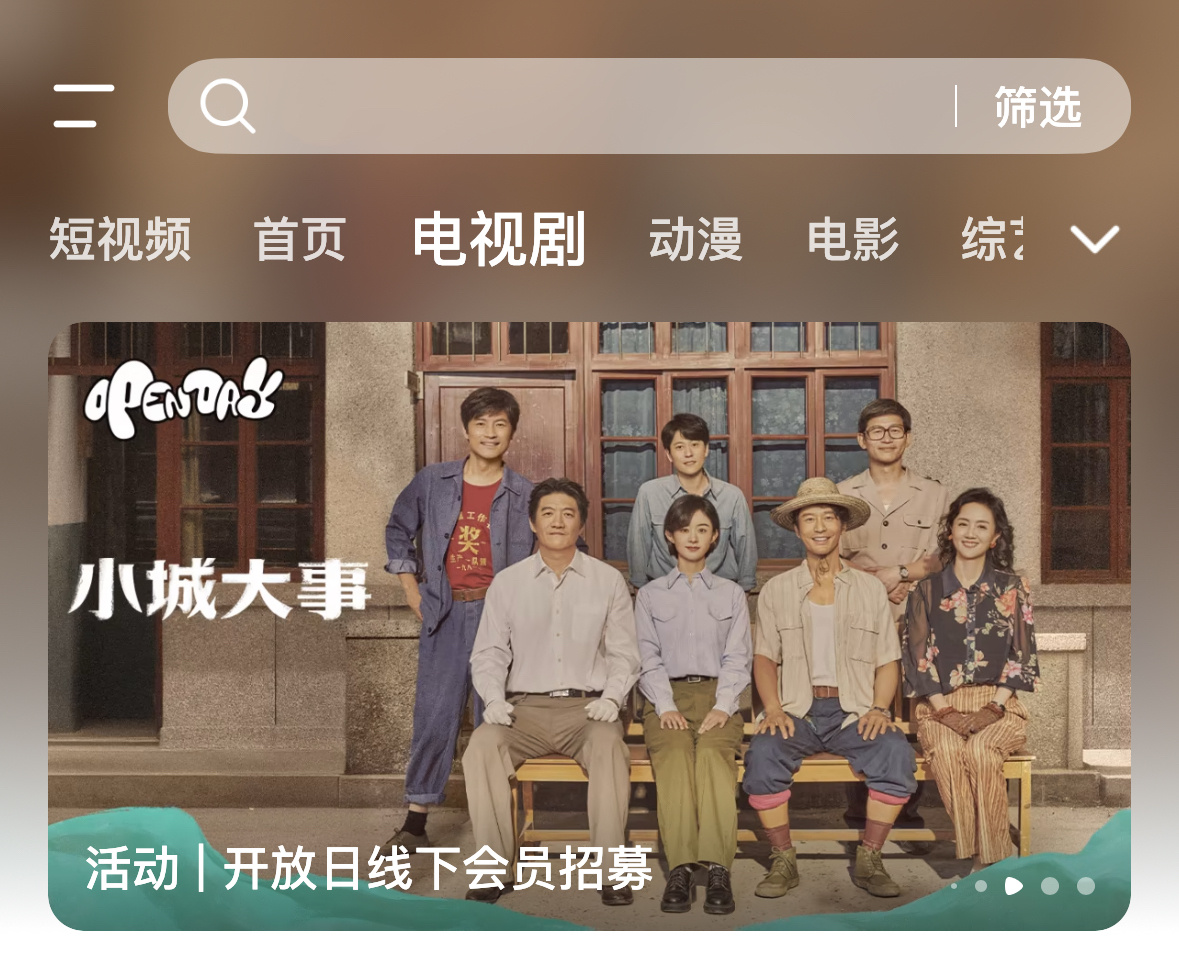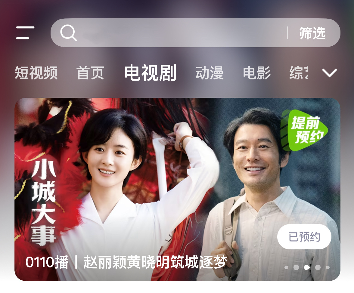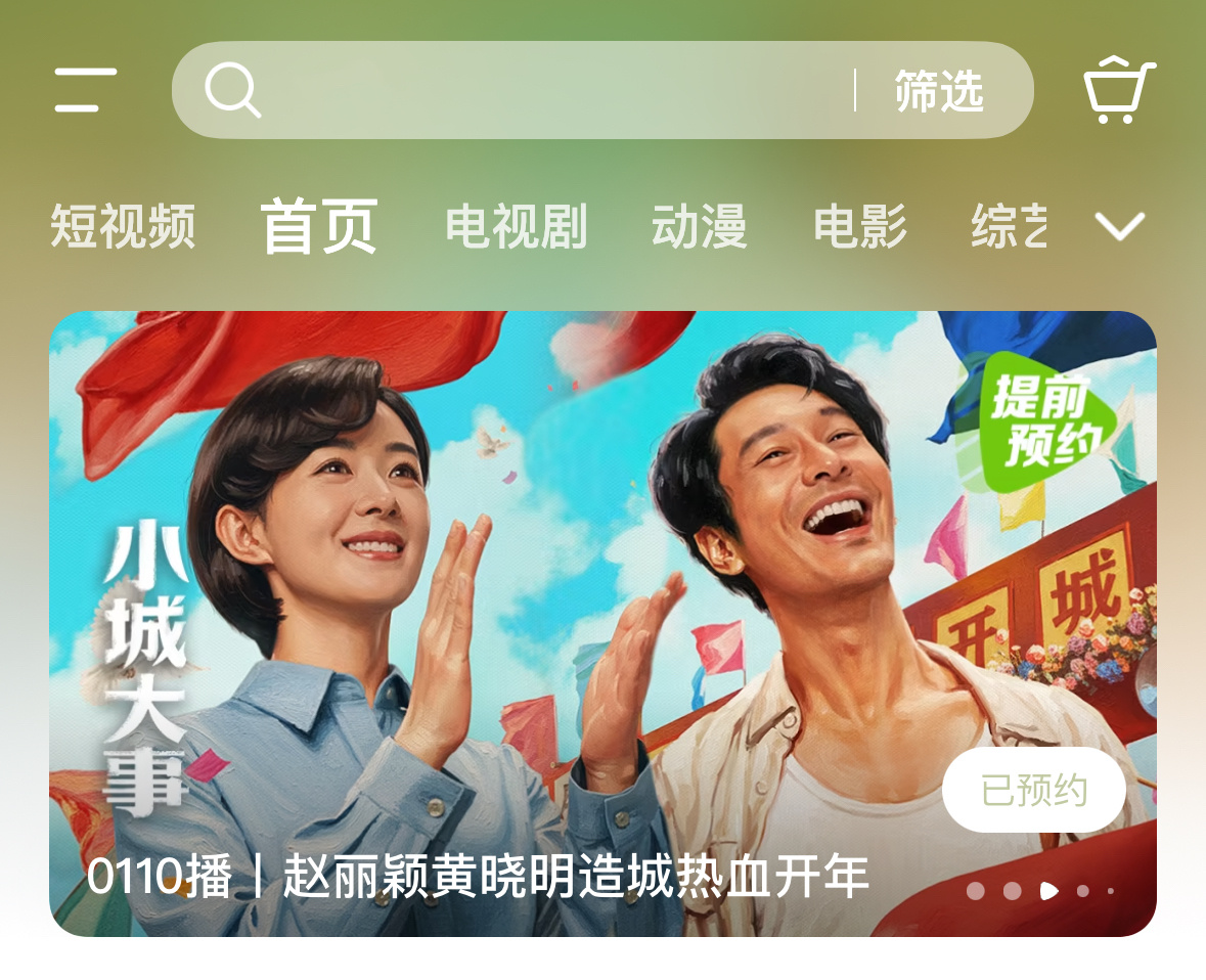 腾讯给赵丽颖小城大事的待遇还不错,首页轮播+电视剧2轮播+1横幅,不愧是央8开年大戏,很重视!