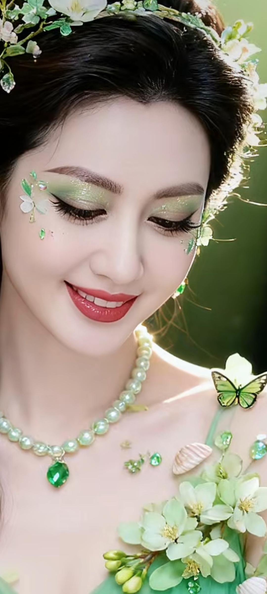 梦幻森林精灵,绿意盎然,花环与蝴蝶的完美结合,自然与优雅的完美融合。