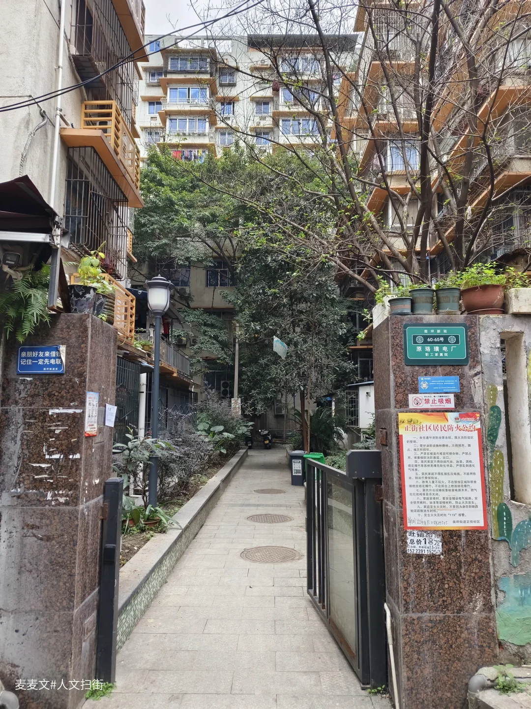 如今这里虽不再是纯粹的单位大院,却依旧留存着电厂人的集体记忆。社区公告栏的防火公约、临街的便民小店、纵横的电线,既见证了珞璜电厂从一期投产到超低排放改造的发展历程,也定格着一代电厂职工的生活日常,成了老重庆工业记忆与市井烟火交融的独特地标。