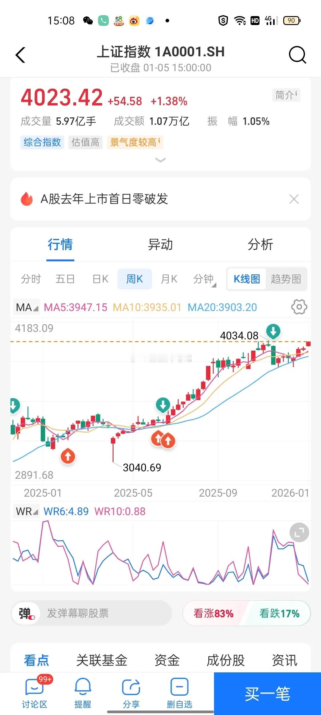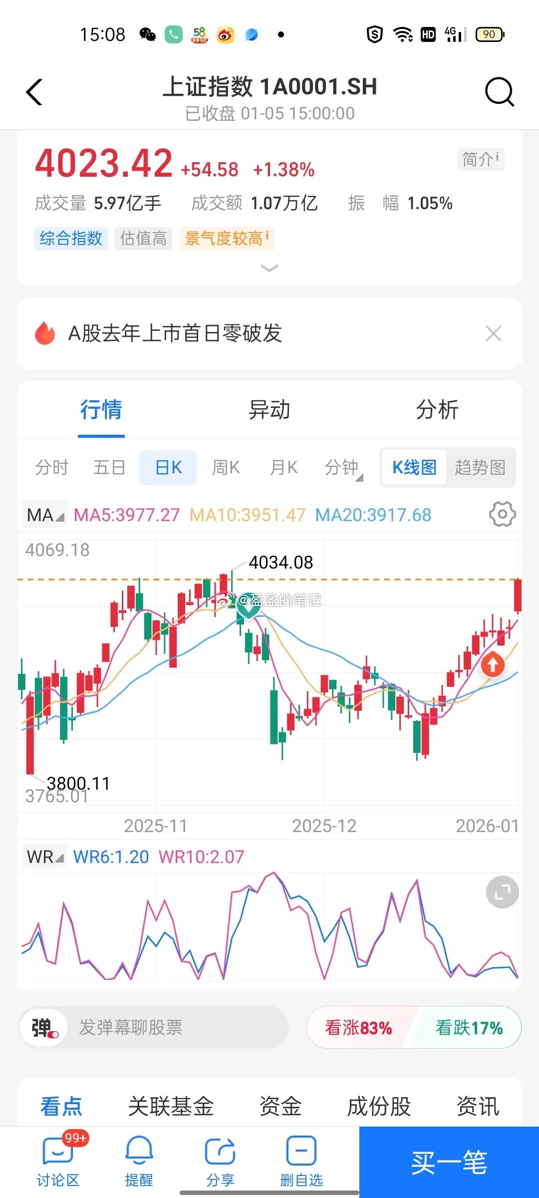 大盘今天开门红,收了根大阳线,几乎最高点收盘,完全符合老韭之前预期。老韭上周说,这周大盘会站上4000点,没想到今天直接就站上了,而且离3034点也只差十个点,一步之遥了。这两天估计大盘就要新高了,如果大盘创了新高之后,是不是就会重拾升势,开启一波主升行情呢?老韭觉得还不到时候,而且大盘如果新高之后,短线反而要小心了。因为到时大盘很可能会有一个短线的急调回踩出现,大概率会回补了今天的跳空缺口。之后才会继续向上拉升,很有可能会拉升到春节前。有人可能会问,为什么创新高之后会回撤,是洗盘吗?老韭之前就一直强调,现在是这波牛市的末期,这波牛市从2635点算起,到26年1月已经两年了。这也到了最后的鱼尾行情,那么既然是末期,那么主力一定会想办法拉高出货。所以4000点之上其实也是这波牛市的顶部区域,虽然4000点肯定不是大盘本轮的最高点,但是离最高点也就差个三、四百点,乜算不了什么,指标股一拉就上去了。既然主力要出货,那就会在4000点附近不断震荡创新高,再回踩再拉升,让散户觉得回踩就是上车机会。说白了,就是培养一支接盘队伍,这样才好派发套现,高位离场。大家可以观察一下月线走势,虽然五月均线继续走高,但已经出现钝化,和K线已经出现了背离。大盘如果想继续保持上升势头,只有先回踩一下支撑,才能再向上。但不管怎么说,也到了强弩之末的时候了,五月线本月还不会,但2月份之后,随时可能掉头向下。所以这也是为什么老韭只看到春节前后出本轮最高点的原因。今天就先说到这,明天或者后天老韭会和大家聊一下26年的投资思路,及其中的前因后果。