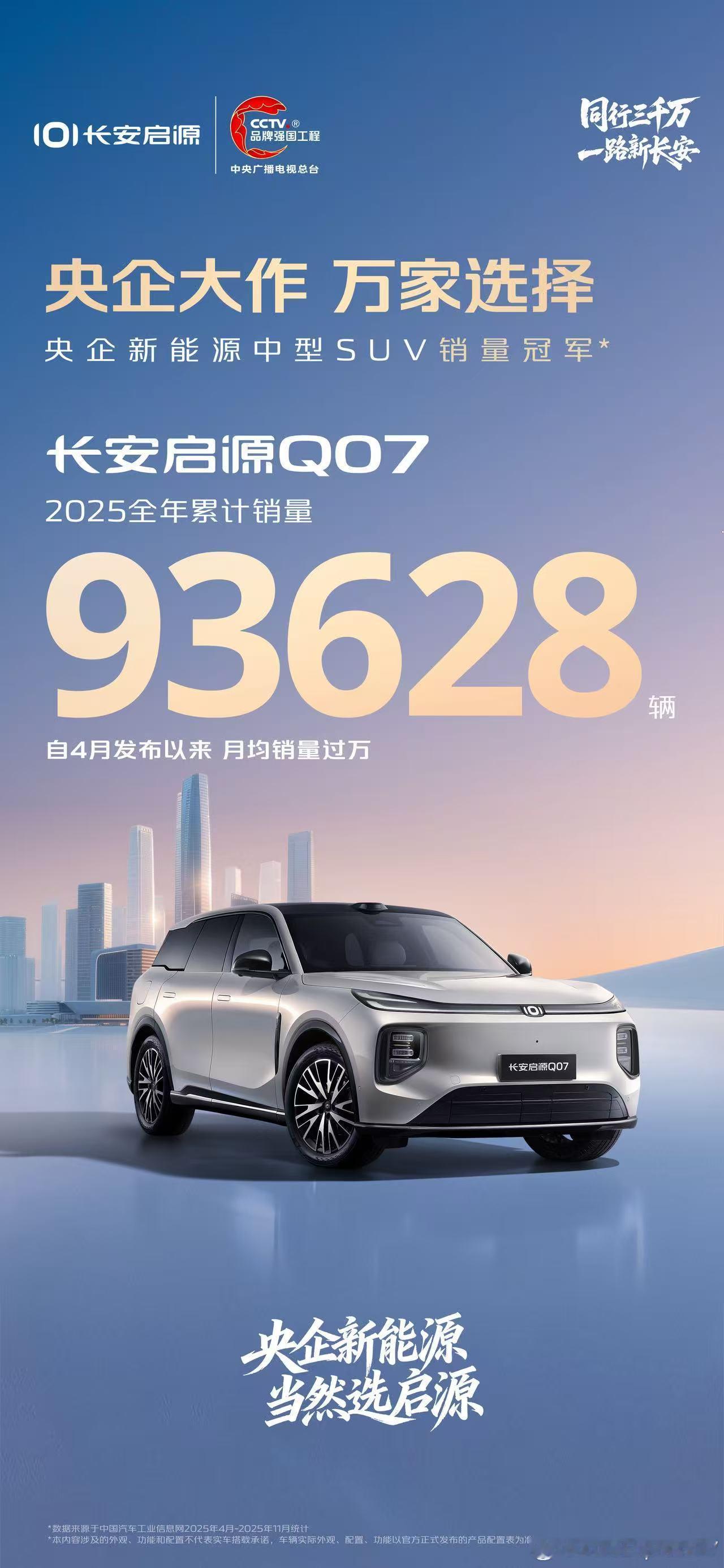 全球精品,实力之选长安启源以奋进之姿,书写2025满分答卷!A06 12月交付突破10000辆全新Q05上市40天,累计订单超20000辆Q07自4月发布以来,年度销量突破90000辆新程再启,势不可当新央企新启源智能移动生活家