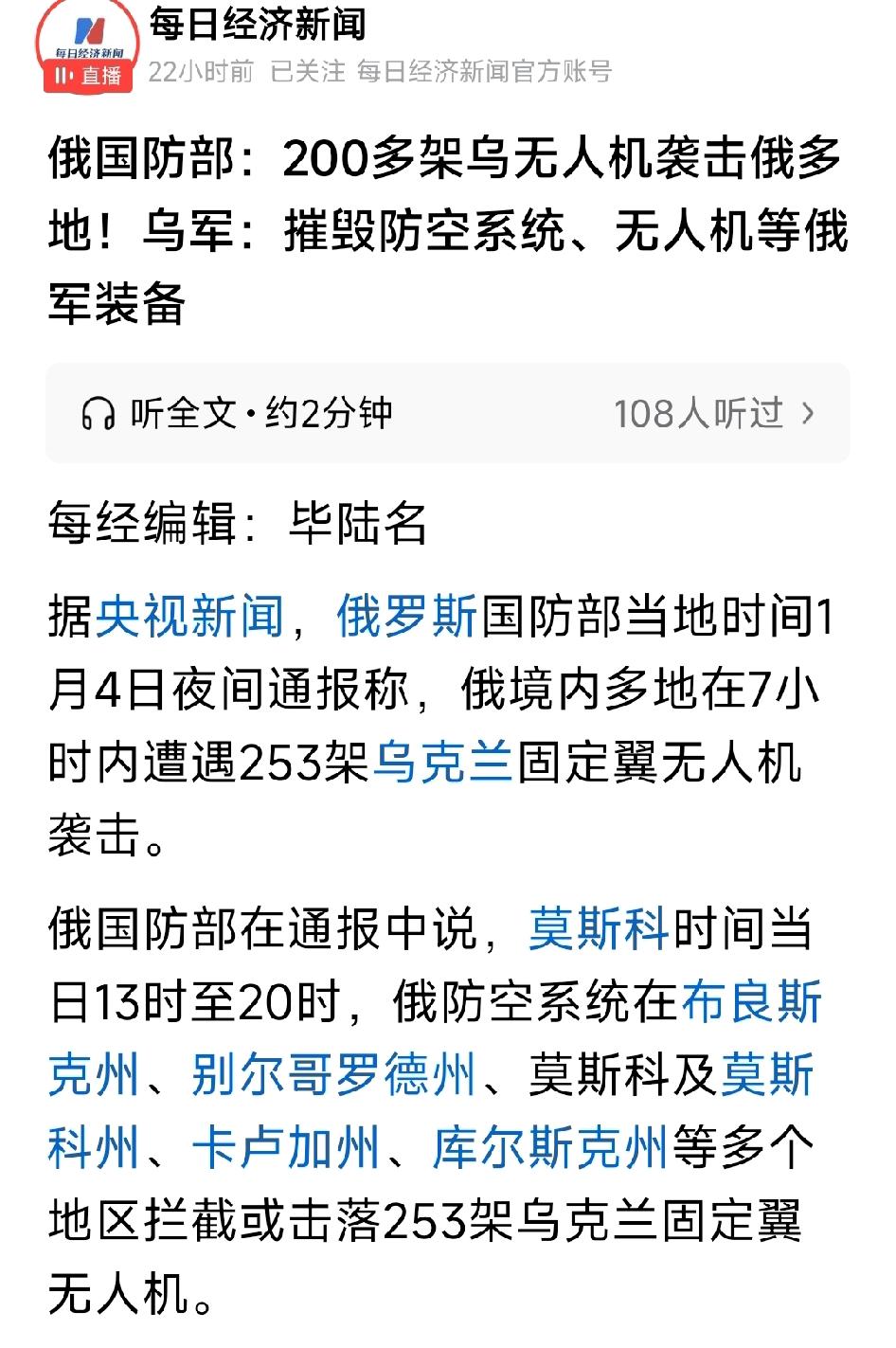 越打越厉害了!200多架乌无人机袭击俄多地!乌克兰军:摧毁防空系统、无人机等俄军装备。乌克兰武装部队总参谋部发布战报称,过去一天前线地区共发生211次战斗,乌军对俄多处人员和武器装备集中区实施打击,在库皮扬斯克、波克罗夫斯克等方向发动进攻或击退俄军进攻。此外,乌克兰军还摧毁了俄军坦克、火炮、防空系统、无人机等目标。泽连斯基总统好样的,这也太厉害了吧! 如果有足够庞大的集群式饱和式的无人机攻击,世界上没有一个国家能防得住,因为各国的防空系统都是防范导弹的,而对无人机群体攻击特别是饱和式的攻击有点束手无策。还有国土越大越难防范。被先发制人打击不可能做到面面俱到。 战火又起,无人机如鸦群蔽日,两国交锋平民苦。和平的鸽哨何时能盖过警报?愿谈判桌早日替代沙盘,让安宁重归乌克兰和俄罗斯大地! 可是,战争估计很难结束啊,欧盟一直在拱火。形势严峻,不容乐观。西方国家不简单。这是越打越来劲儿了吗?俄罗斯无人机 乌战局势 乌军新型无人机 乌军战死 基辅无人机浩劫 俄式无人机 无人机战争