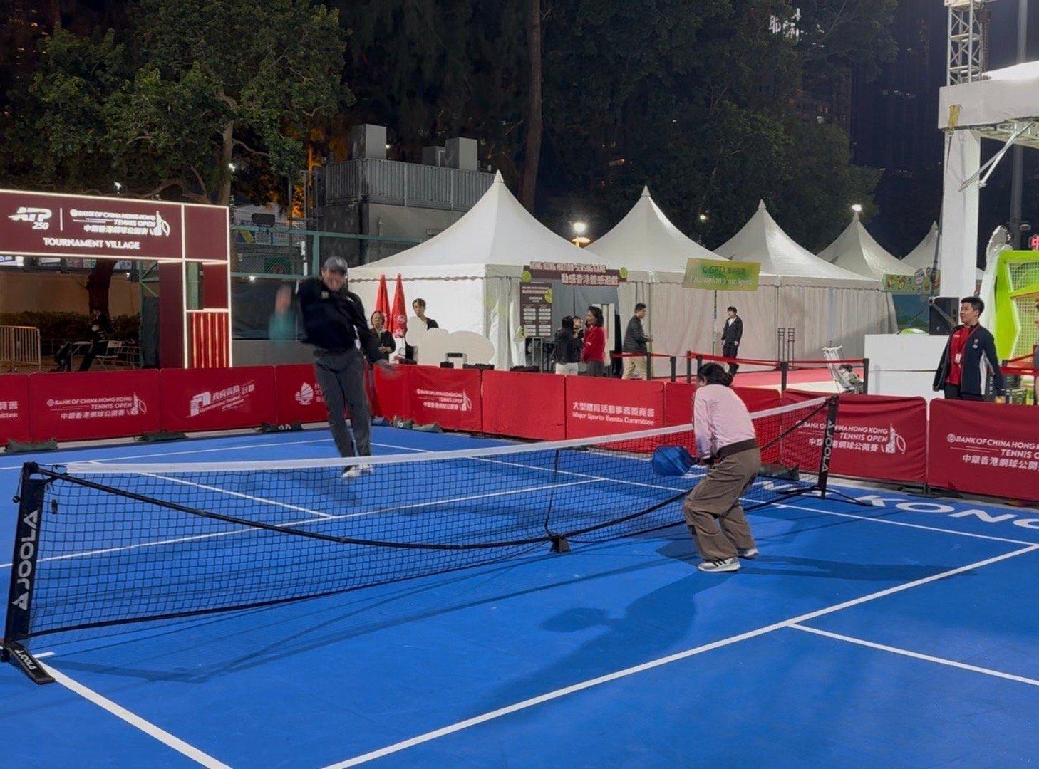 偶遇赢球的阿昺,来外场打匹克球。一问才知道,说是陪妈妈一起来玩一下。我说你真是个孝子。他笑着说:“这话听着怎么有点不太对劲。”