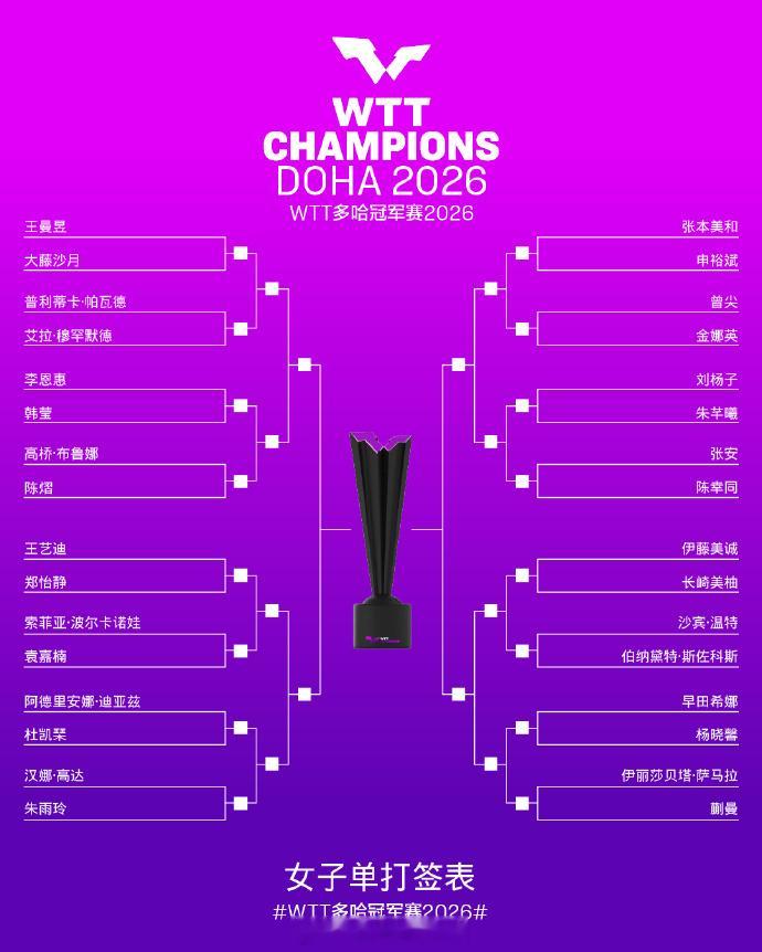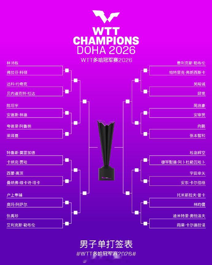 WTT多哈冠军赛2026男、女单签表
